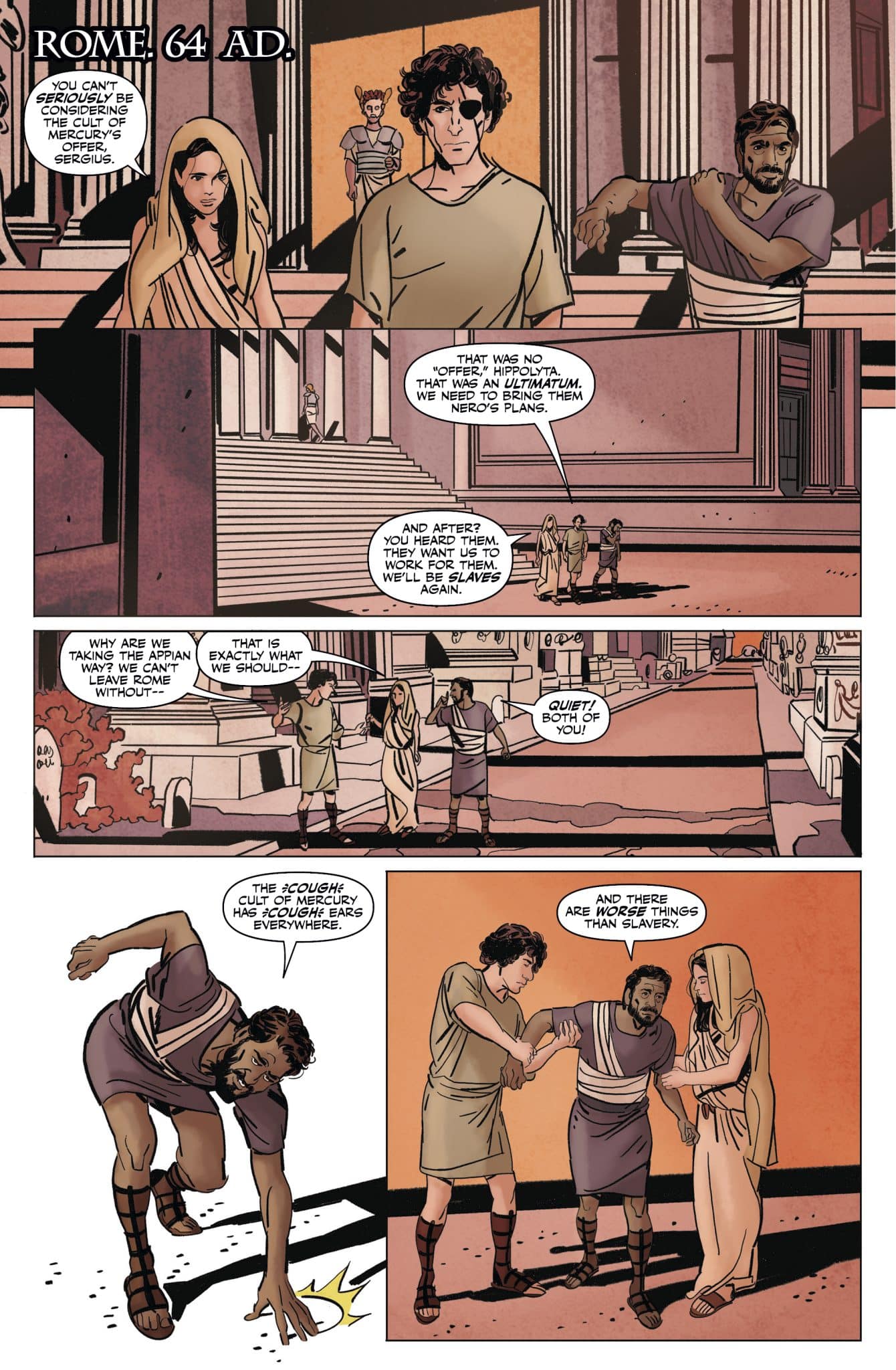 The crew that robbed The Temple of Saturn is running out of time. Their historic theft has made them a target of rival gangs, mystery cults, and Emperor Nero himself. Worse, they’ve been betrayed from within by one of their own. With their loot dwindling, they’ve got to escape both the fire and the Emperor. In this final issue, they are torn between making a less-than-clean getaway and exacting vengeance against Nero for all they have suffered. Who, if any, will make it out alive?