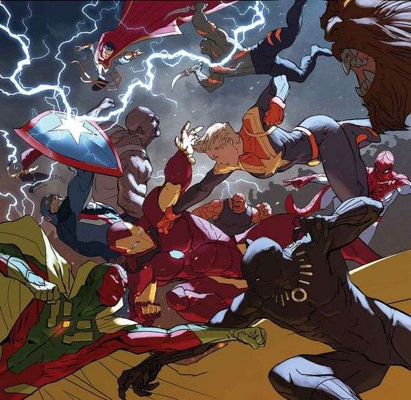 [quote]This was a hard decision. Brian was walking us through his story notes at a retreat, and he needed something to happen at the end of issue #1 that would ratchet up the stakes. That’s where the scene we see the aftershocks of the assault on Thanos comes in. We started to workshop a scene that had a group of heroes, strong in their convictions, go out on a mission to stop one of Ulysses’ predictions, and we realized that for the scene to have weight, not all of them should come home. It was gut-check time.