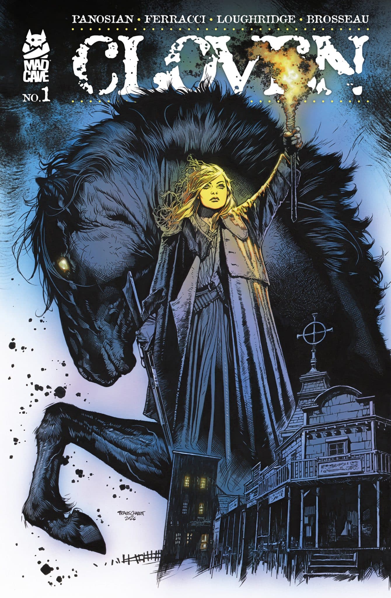 Cloven #1 will go on sale July 29th, 2026 (with a pre-order cutoff on July 7th), with covers by Panosian, Jacob Phillips, Mark Chiarello, and Travis Charest. To stay up-to-date with Mad Cave Studios, visit www.madcavestudios.com
