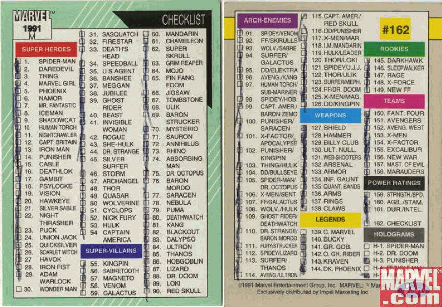 J’ai le zip de ces deux collections de cartes du Marvel Universe, I et II semble-t-il :