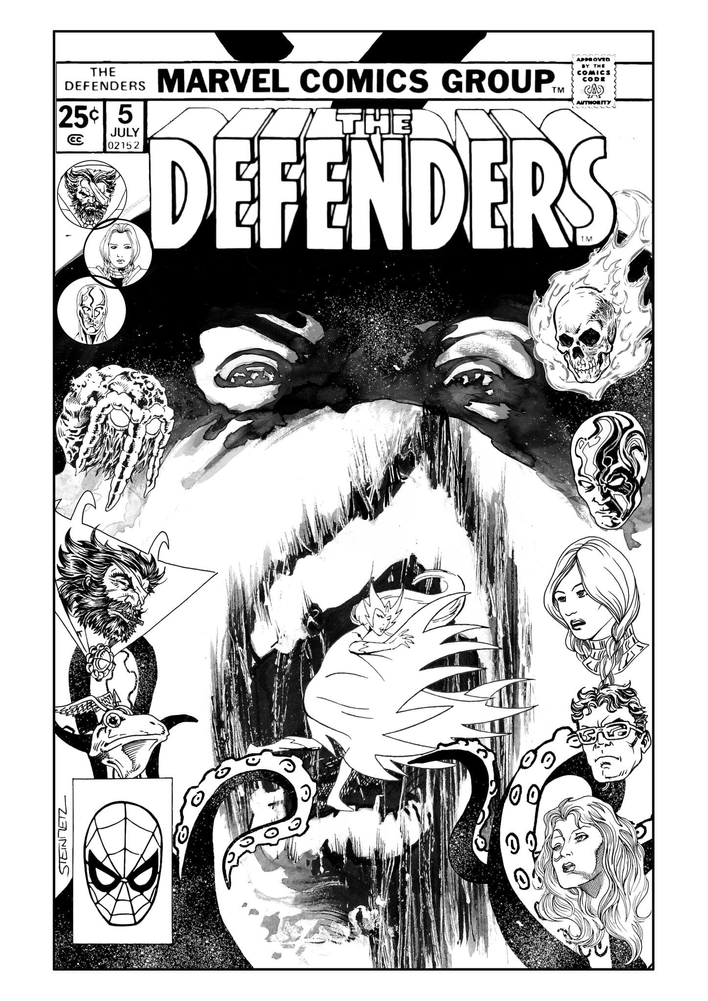 Je suis sur la conception des bonus, et dans cette partie du futur Fake Cover sur les Defenders, chaque cover aura droit à sa version n&b. Ceci implique que je doive retravailler chacune en désaturant, polarisant, supprimant des parties qui étaient uniquement en couleur. C’est un peu long, mais le n&b, c’est la base même du dessin, et je trouve intéressant de le mettre en avant.