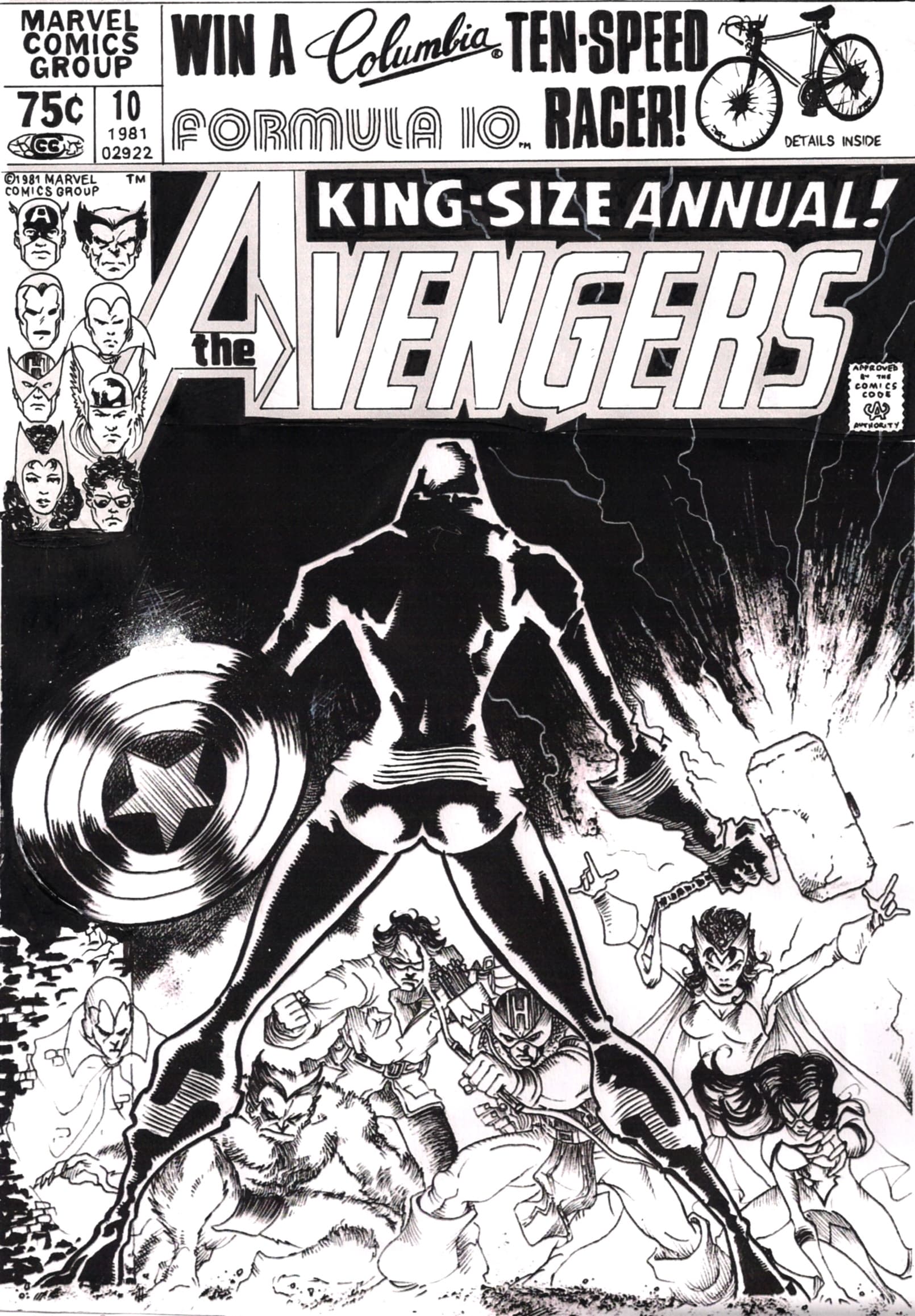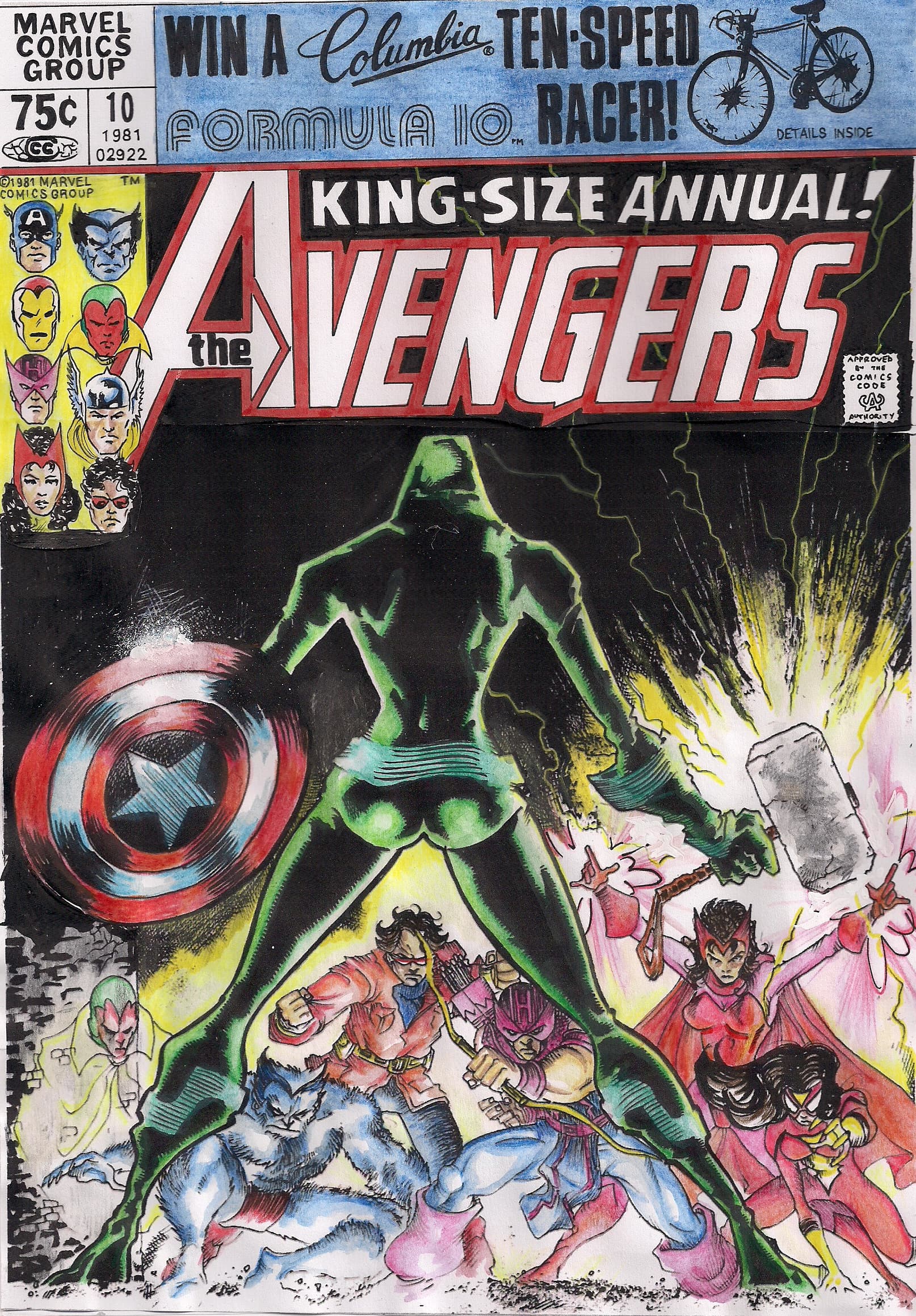 Magie du recadrage : un dessin qui n’était pas forcément destiné à être une fausse couv’ devint moins problématique au niveau des proportions du Fléau (les enfants ayant participé à l’effort de guerre , en tant que modèle, ou en tant que coloriste : la dernière illustration ayant été mise en couleur par le fiston).