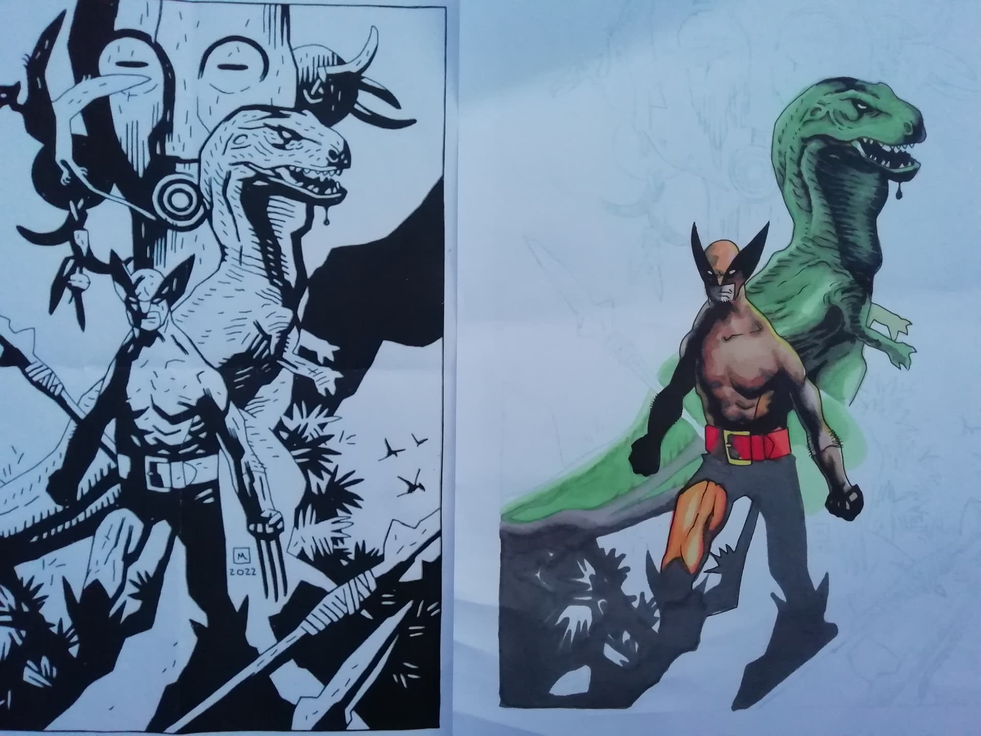 Moi, je n’arrive pas à me positionner dessus parce que ça (me) paraît présomptueux, d’avoir l’audace de « refaire » le dessin. Parce qu’au fond de moi, je ne suis pas fan de ce qu’en a fait Mignola, et je me demande si ma démarche n’est pas du genre : « je vais faire mieux ! » donc là je me dis qu’il y a trahison, et ça devient moins intéressant.