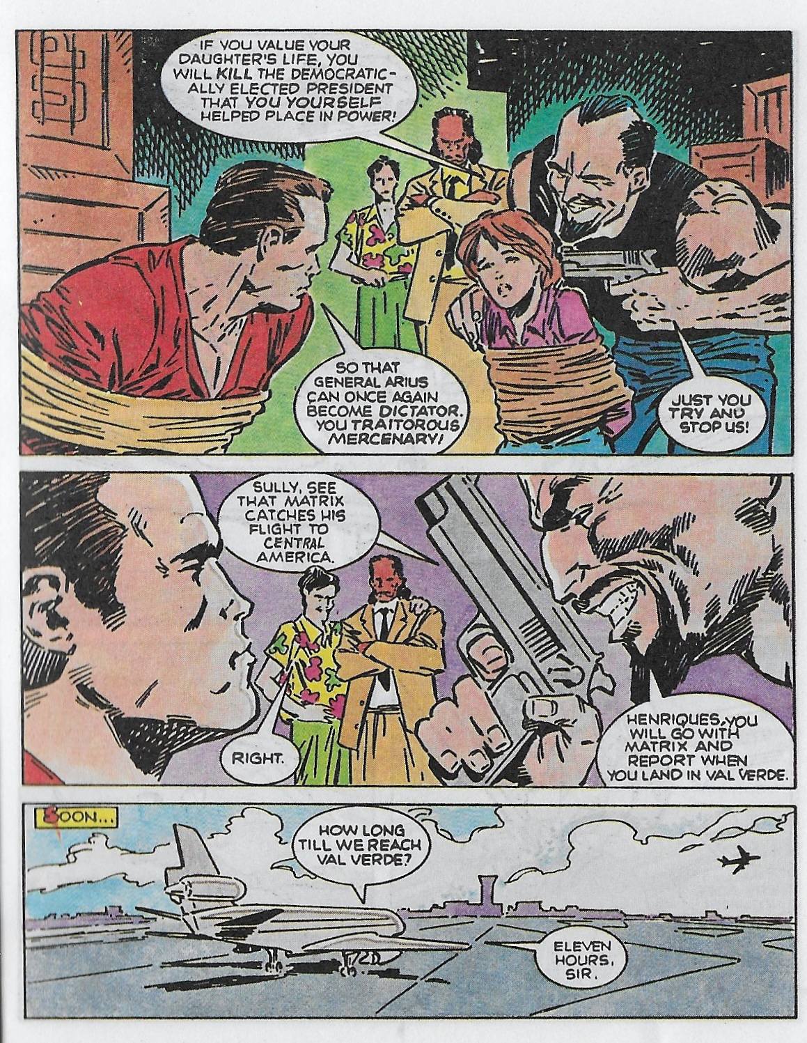 La fille de Matrix est enlevée dans le but d’obliger son père à tuer un chef d’état dont il a contribué à l’élection après un coup d’état. Mais Matrix sait qu’il ne sert à rien de négocier avec des mercenaires et qu’il risque de ne jamais revoir sa fille. Commence alors une course contre la montre pour retrouver Jenny avant l’instant fatidique. Une histoire-timbre poste prétexte à un déferlement de bastons, d’explosions et de gunfights menés sur un rythme soutenu.