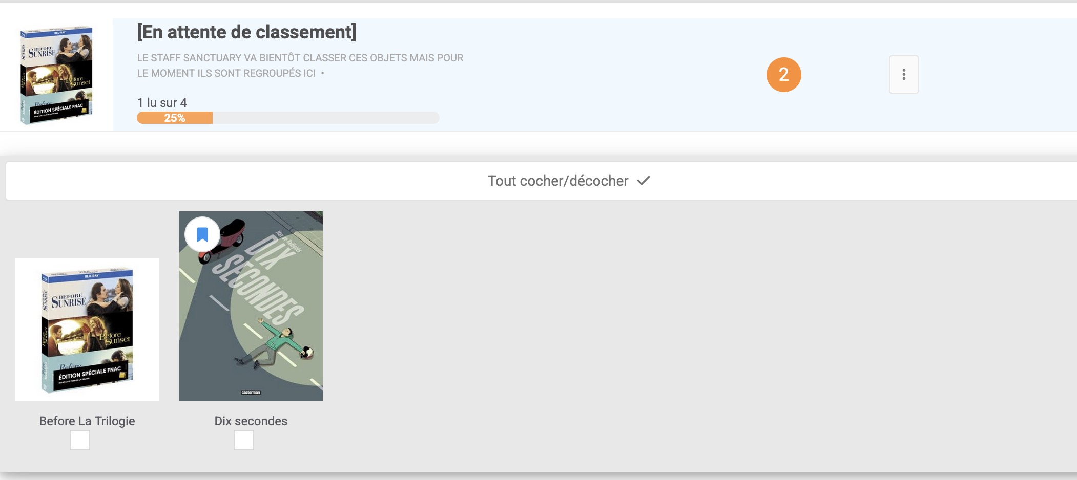 Merci à tous les deux pour cet immense travail ! Tout est bien validé Tori ! J’en ai profité pour refaire un peu le point dans la liste perso que je me suis faite à côté et tu devrais donc retrouver une fiche à classer (que j’avais oublié de rescanner). Il arrive visiblement parfois que le scan de code barre ne fonctionne pas bien, c’est très rare mais ça m’arrive (par exemple j’ai réessayé tout à l’heure de scanner l’édition BR de Mashle de la Fnac, impossible de faire le scan, il faudra que je fasse une contrib).