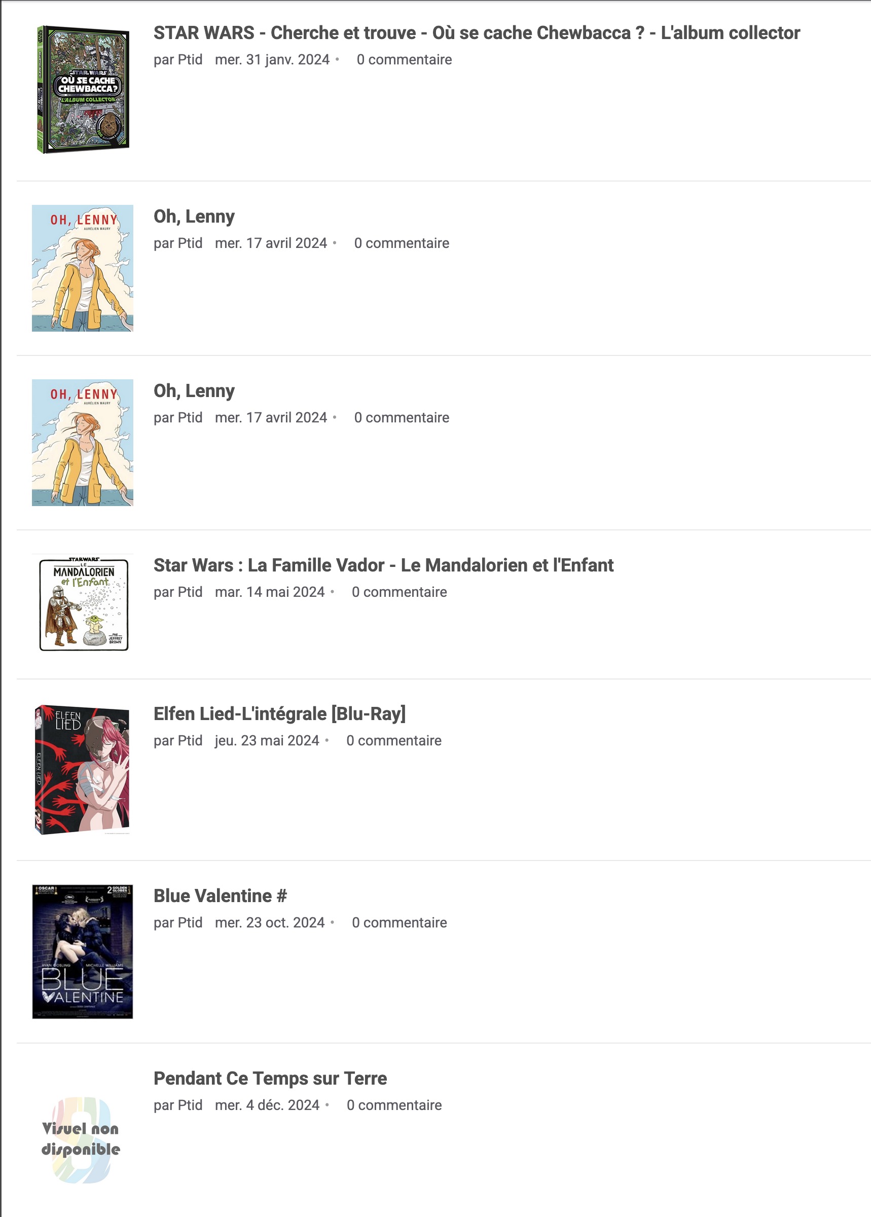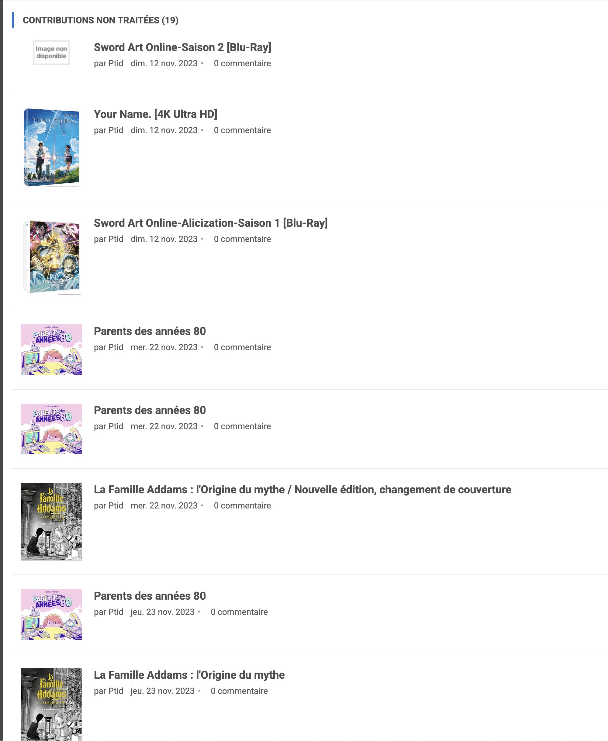 De plus, je ne comprends pas tes contributions de 2023, car les plus vieilles que je trouve en cherchant sont de 2025 coté BD, comics ou mangas.