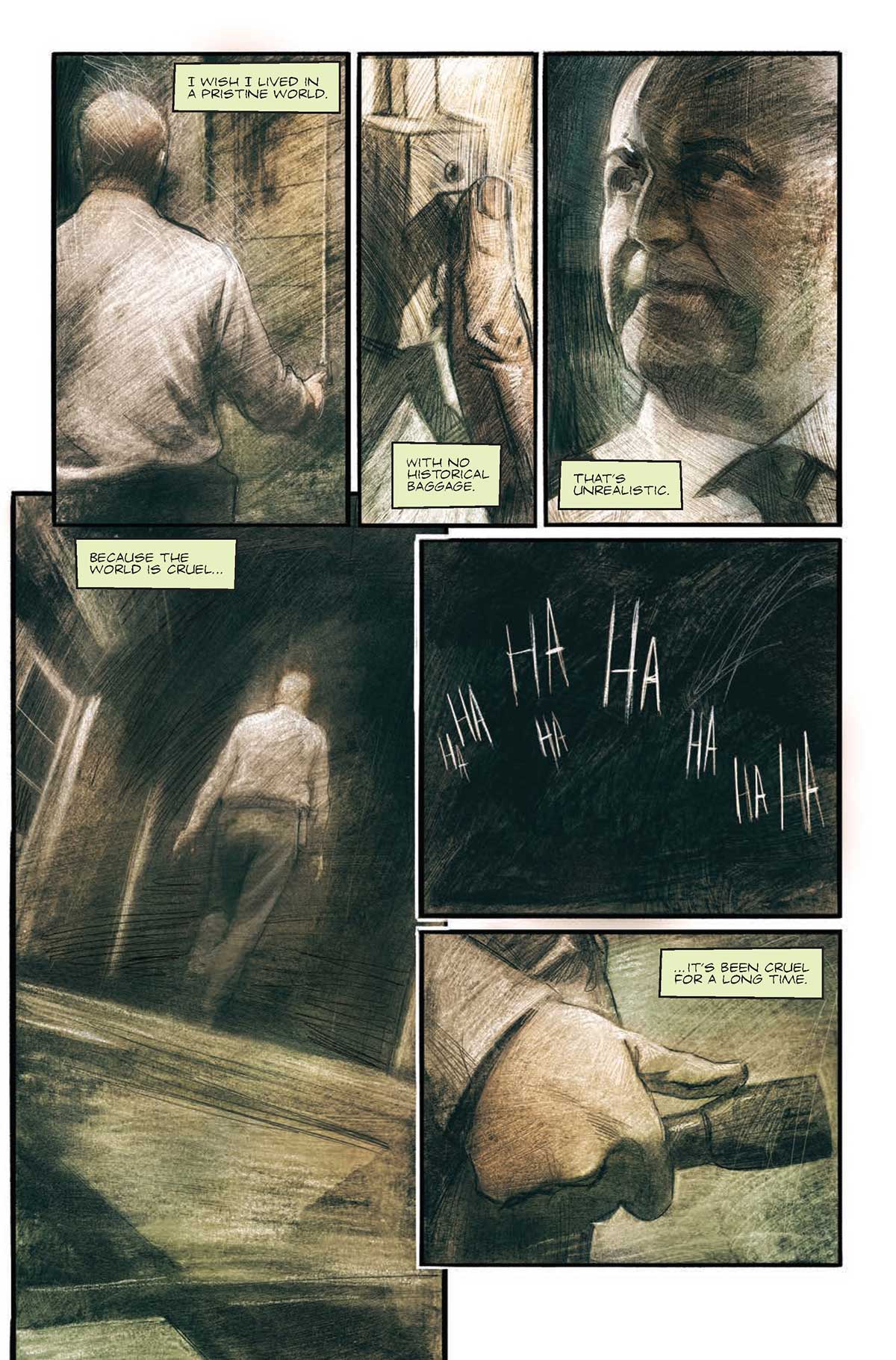 WRENCHED BACK FROM THE ABYSS, A BLOODSTAINED HISTORY HAS COME ROARING BACK TO HAUNT THE LIVING! Inspired by the all-too-real events of Maryland’s most notorious mental asylum, master storyteller Rodney Barnes (Batman: Full Moon) and ethereal artist Elia Bonetti (Darth Vader) unite to tell the heart-pounding tale of a murder investigation where the vengeful ghosts of the 20th century are both suspect and witness…