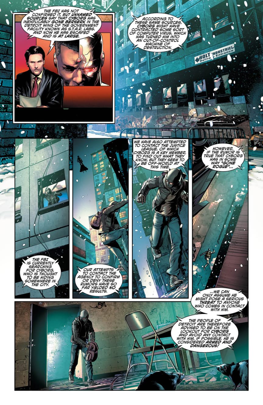 “Kill Switch”! Cyborg has been deactivated! Now, Vic Stone must rely on help from the outside to break into S.T.A.R. Labs and switch the Justice Leaguer back on. But can Cyborg rely on a clever but luckless streetwise thief whose only claim to fame is an arrest record a mile long?