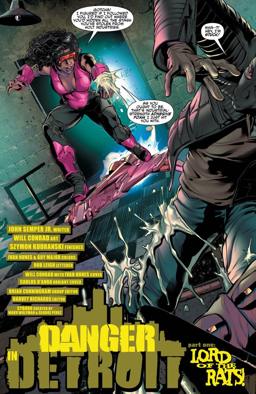 « THE IMITATION OF LIFE » part one! Cyborg is thrown into conflict with every robotic threat to the DC Universe as a brand new era begins for Victor Stone, courtesy of writer John Semper Jr. (Spider-Man: The Animated Series) and artist Will Conrad (Angel & Faith)!