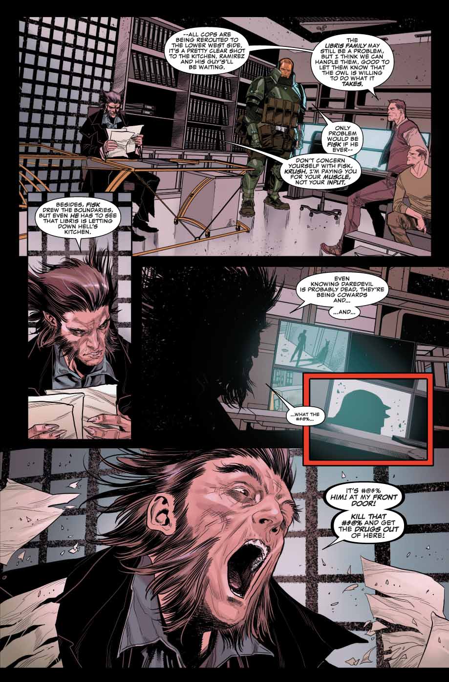 Marco Checchetto: I felt in love immediately with Chip’s script. It’s in pure Daredevil style. We love the same stories and characters and we have a similar vision for this series, how Matt has to look and his costume for example, or the page layouts. I like his storytelling – it’s very simple to work on his script, it’s all perfect and measured. It’s a joy when you can work with writers like him. The fact he is an artist too can help to find some visual idea. Chip did the first teaser of the series for example.