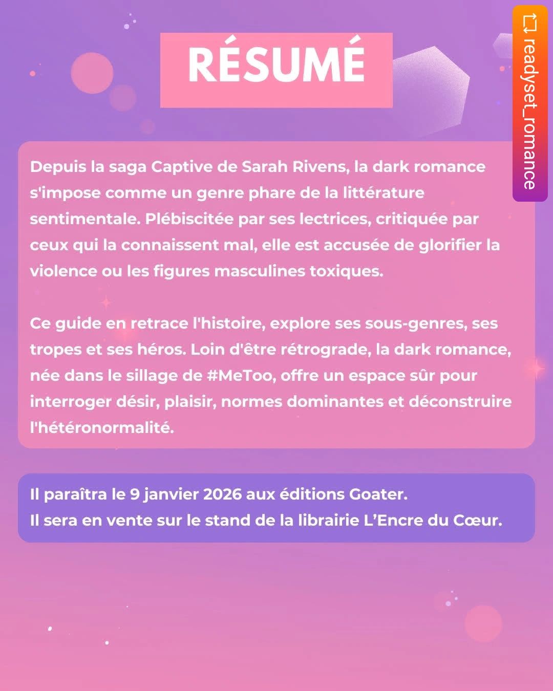 Depuis la saga Captive de Sarah Rivens (2022), la dark romance s’impose en France et ailleurs comme l’un des genres les plus explosifs de la littérature sentimentale. Adorée par ses lectrices, traînée dans la boue par ses détracteurs, elle est accusée de glorifier la violence, d’encenser les hommes toxiques ou encore de pervertir la jeunesse – souvent par ceux qui n’en ont jamais lu une ligne. Ce guide amoureux en retrace l’histoire et explore ses différents sous-genres, ses tropes, ses thématiques et ses héros. S’appuyant sur une abondante bibliographie et sur des entretiens avec la communauté, il démonte les idées reçues pour plutôt révéler un genre complexe, avec ses propres codes d’écriture et de diffusion. La dark romance n’est pas une littérature rétrograde. Enfantée par le mouvement #MeToo, elle offre un espace sûr pour explorer le désir, le plaisir et la rébellion contre la norme dominante, tout en participant à une remise en question profonde de l’hétéropatriarcat.