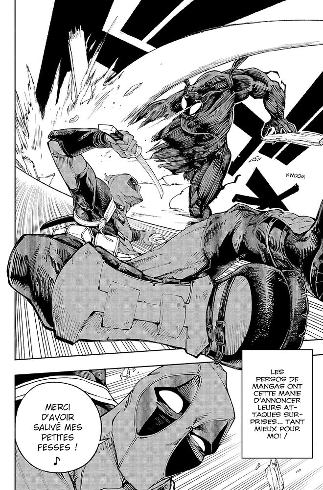 Deadpool fait maintenant partie de l’équipe de samouraïs chargé de veiller sur Tokyo. Ayant pris ses aises dans la capitale japonaise, il va rapidement retrouver des visages familiers. Les ennuis s’enchaînent et le plus déjanté des mercenaires continue de dissiper le chaos. Profitant pleinement de son nouveau quotidien et se présentant comme un membre essentiel du groupe, il va devoir faire face à un adversaire de taille : Loki ! Toujours caché dans l’ombre, le dieu de la malice est bien décidé à le faire basculer de son côté. Et puis… Deadpool contre Thanos ? Ah bon !!! La collaboration entre Marvel et le Shonen Jump est un succès ! Le mercenaire disert est aussi à l’aise dans l’univers des manga que dans celui familier des comics. Les codes se mélangent et donnent vie à une aventure déjantée ! Prépubliée dans le Shonen Jump +, le magazine web de la Shueisha, cette série a d’abord été un one-shot avant de devenir une série courte en deux tomes. Voici la conclusion de ce récit totalement barré à l’image de son héros irrévérencieux !