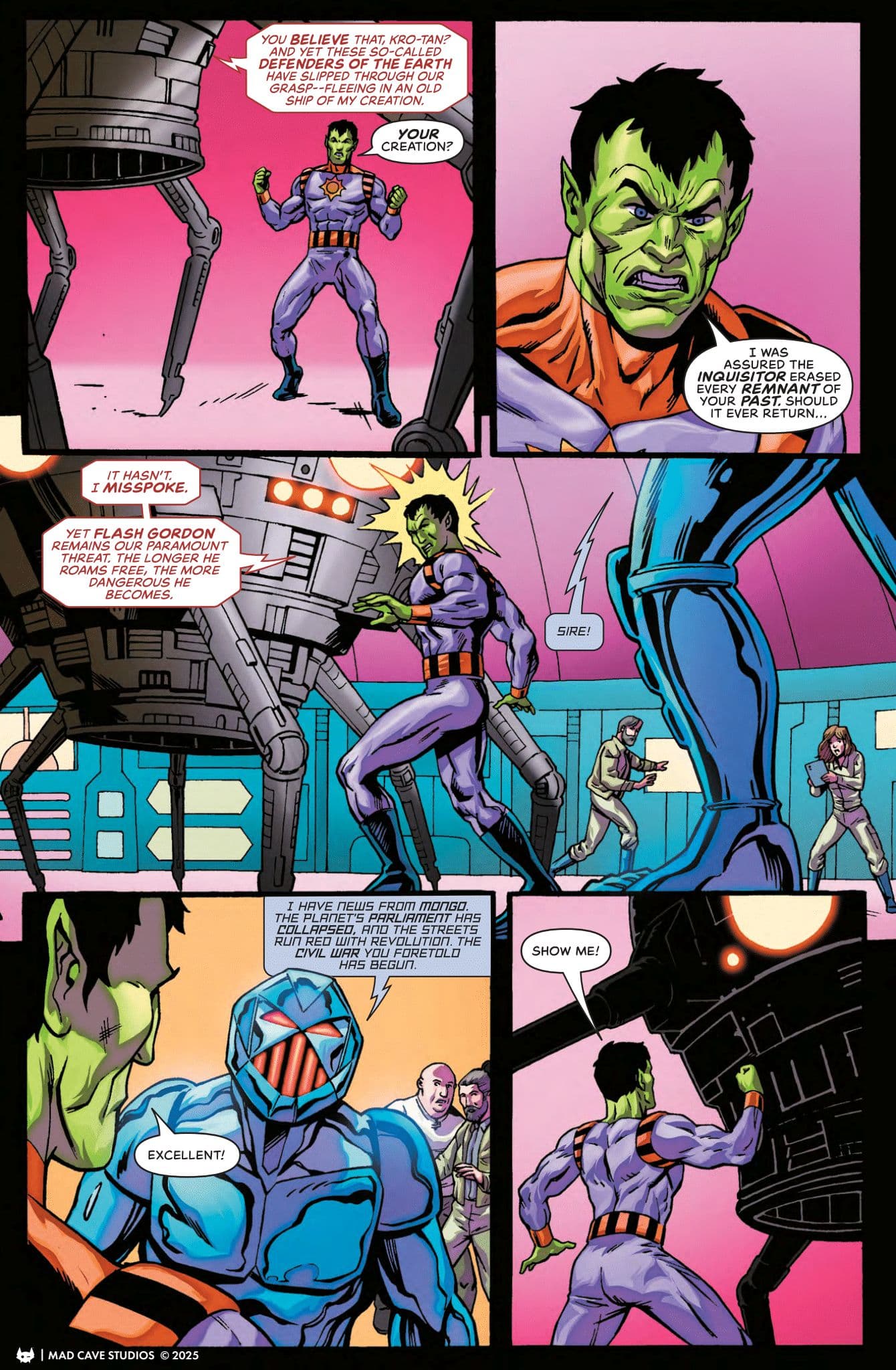 C’est bien, oui. Je continue de trouver dommage que Mad Cave n’aide pas plus les lecteurs à se plonger ou replonger dans cet univers, mais la lecture est fluide et prenante. Les subplots sont clairs et bien amenés, les soupçons sur Krotan sont réels mais aussi sur Kshin, et l’attitude de Mandrake est un peu expliquée. A titre personnel, j’aime beaucoup les éléments sur le Phantom, que ça soit l’opposition avec Kurt mais surtout la légitime fureur de Jedda, qui veut aider mais ne pourrait pas en principe. C’est légitime, bien vu, bien amené, et Dan DiDio équilibre bien son récit sur ses personnages. Jim Calafiore illustre l’ensemble dans son style, que je continue de vraiment bien aimer.