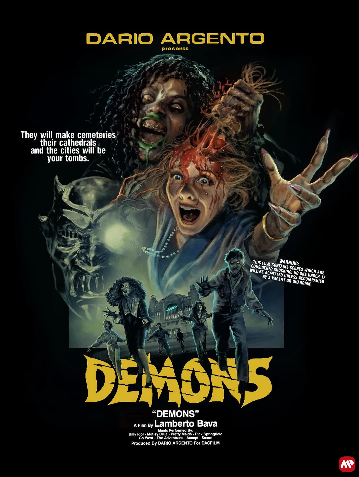 Avec son co-scénariste Dardano Sacchetti (vétéran du cinoche de genre italien qui a notamment régulièrement collaboré avec Lucio Fulci), Lamberto Bava a écrit un traitement qu’il a proposé à plusieurs producteurs…et c’est finalement Dario Argento (l’envie de se remettre à la production le titillait sept ans après le Zombie de George Romero) qui a accepté de superviser Démons, tout en participant au remaniement du script pour lui donner une approche plus directe, plus « rentre-dedans ».