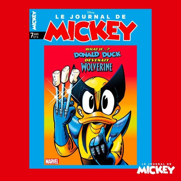 Au fait, je précise pour les curieux que ce numéro est imprimé tête-bêche, si bien que ce comic est imprimé, donc, à la fin du numéro et à l’envers. Il y a par conséquent une deuxième couverture, reproduisant celle du numéro américain. C’est là qu’intervient mon deuxième bémol : le titre devient « What If… Donald devient Wolverine ». Là aussi, c’est peut-être explicable, par exemple par un souci contractuel, mais une formulation genre « What If : Et si Donald devenait Wolverine » aurait à mon sens très bien rempli son office.