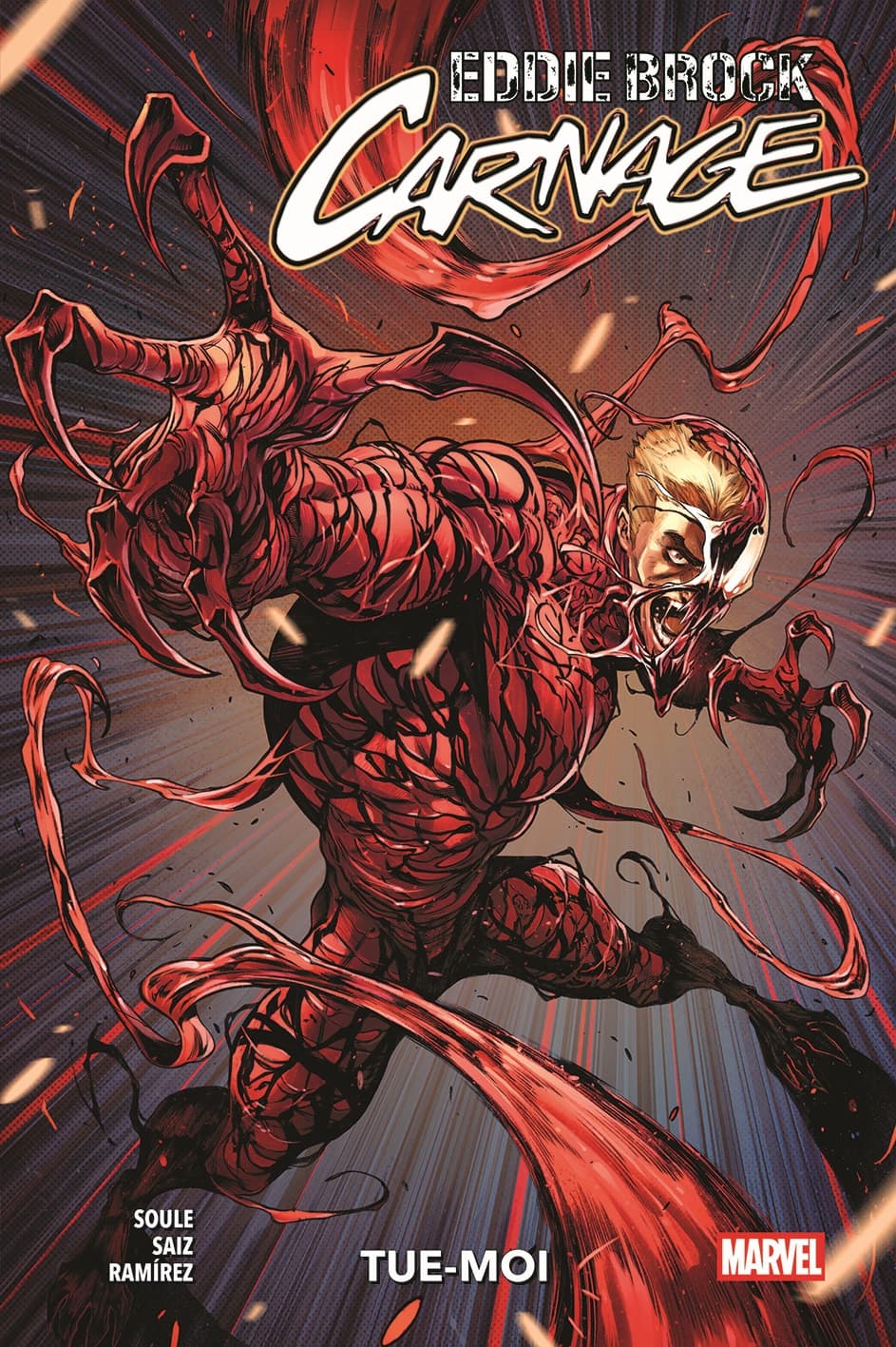 Eddie Brock connaît plutôt bien les symbiotes : il a été Venom, Anti-Venom, et même le redoutable Roi en Noir. Mais après les événements de VENOM WAR, il fusionne avec l’un des symbiotes les plus dangereux de tous : Carnage. Sera-t-il capable de dompter la soif de sang de cette créature ou sombrera-t-il à son tour dans la folie meurtrière ? Une nouvelle ère s’ouvre pour Eddie Brock, alors que Venom a changé d’hôte ! Charles Soule (Dark Vador) et Jesús Saiz (Punisher, Captain America) forment un duo de choc.