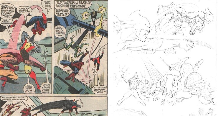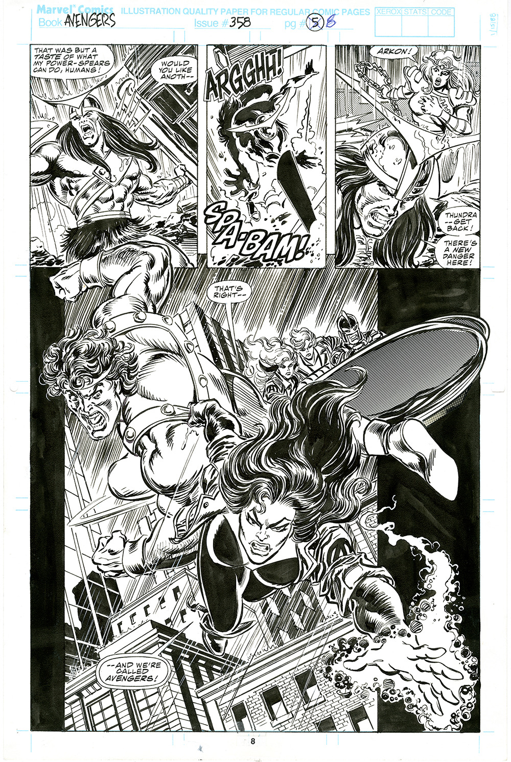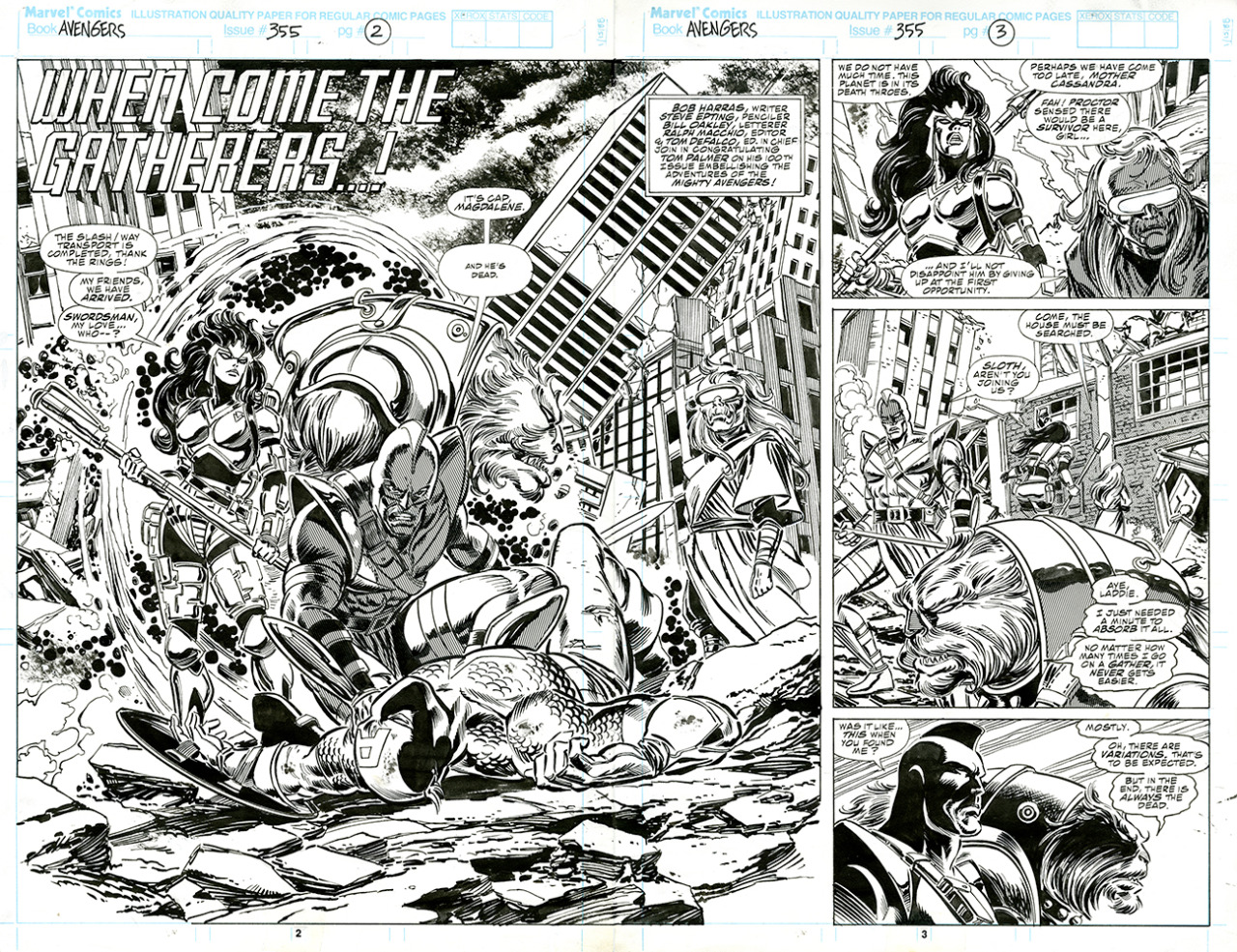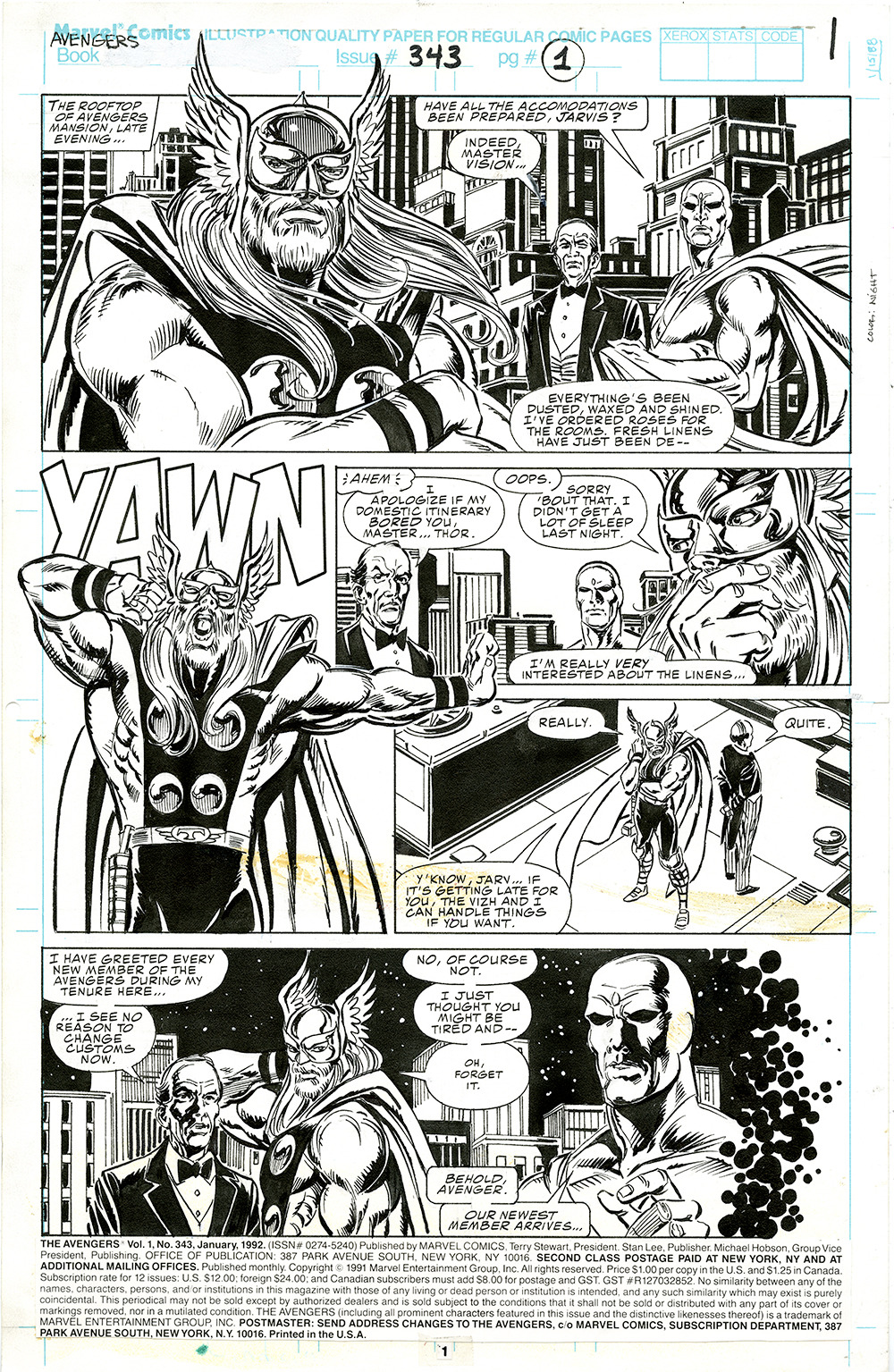 Un autre exemple d’encrage avec un papier « duo-shade » (Avengers #326, dessiné par Paul Ryan).