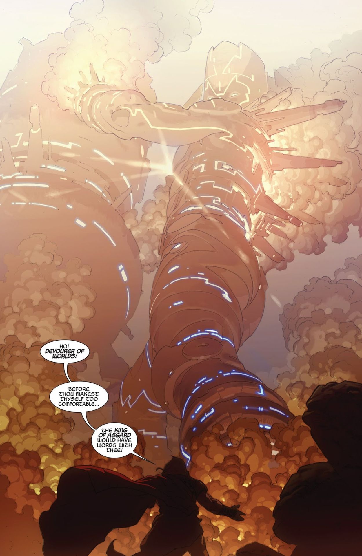 “HO! DEVOURER OF WORLDS!..” , by Esad Ribic, with Colors by Ive Svorcina, Letters by Joe Sabino, and a Script by Jason Aaron.