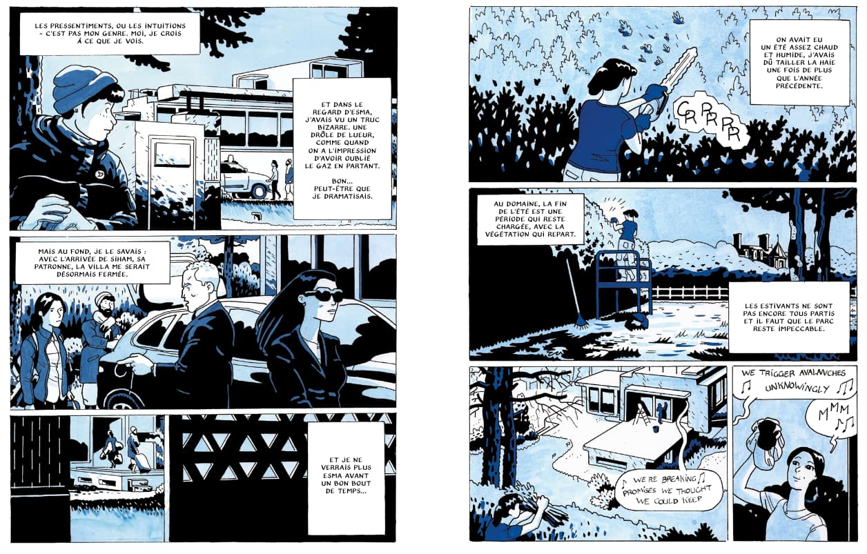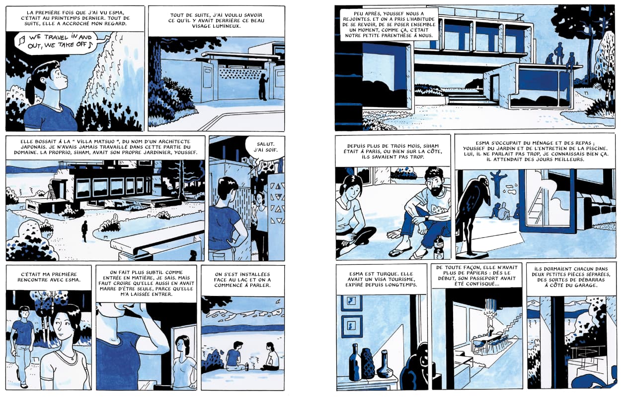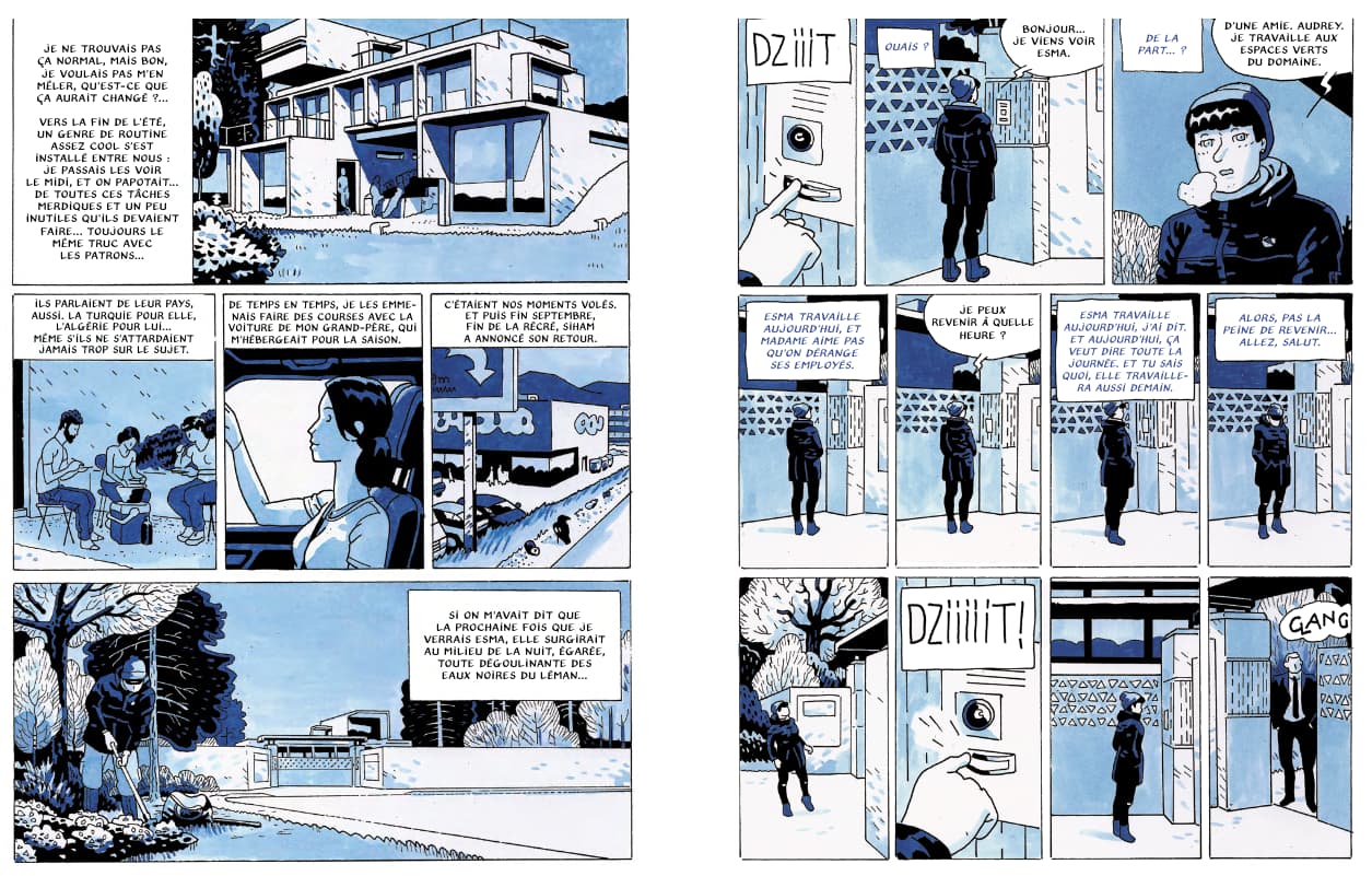 La première fois qu’Audrey croise le regard d’Esma, par une chaude journée d’été, dans le domaine de milliardaires près de Genève dans lequel elles travaillent, une émotion forte et nouvelle lui enflamme le ventre. Alors quand la jeune Turque sans-papiers déboule chez elle au beau milieu de la nuit, dégoulinante des eaux noires du Léman, en lui disant que sa vedette de boss vient d’être noyée dans sa piscine par un mystérieux assassin, Audrey décide de la croire.