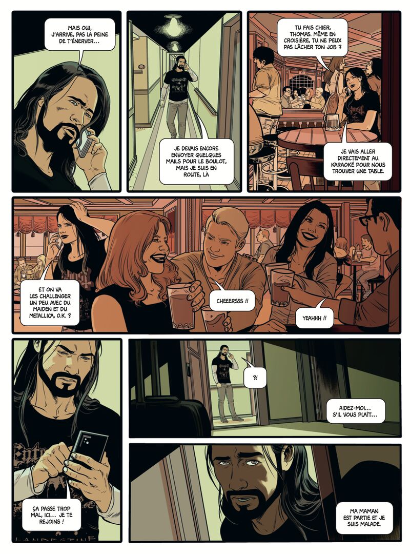 Une planche de notre adaptation en bande dessinée de « Blood Cruise », le roman de Mats Strandberg ! Publication en 2025 aux éditions Dupuis, Stay tuned !