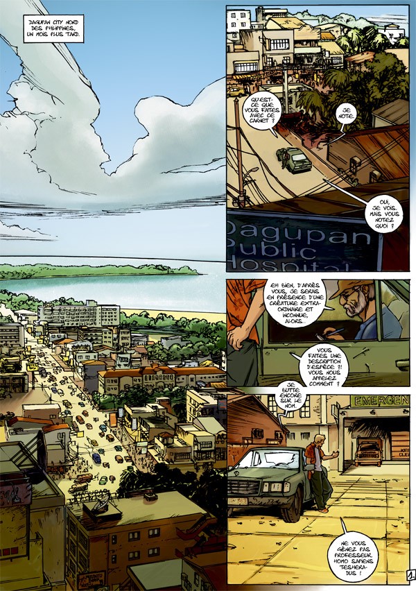 Graphiquement, même si le dessinateur propose un trait un peu vert et pas encore affirmé (comme il l’est davantage dans Inhumain), on sent une grande maîtrise de la narration et des emprunts à la génération de Mathieu Lauffray ou Benoît Springer. Les visages de ses personnages sont beaux et expressifs et la composition des planches joue agréablement sur la taille des cases et la succession de plans bien articulée.