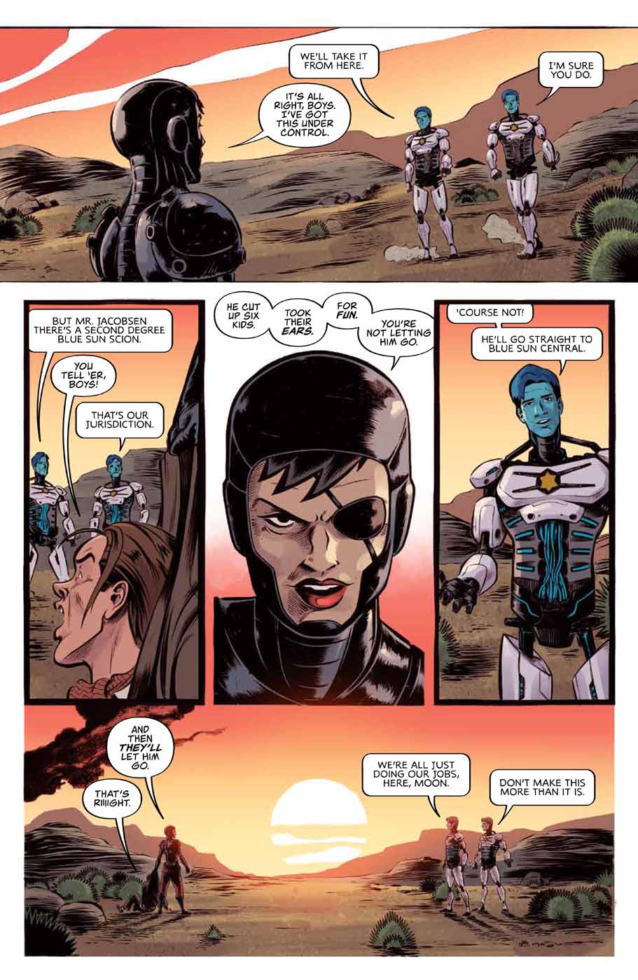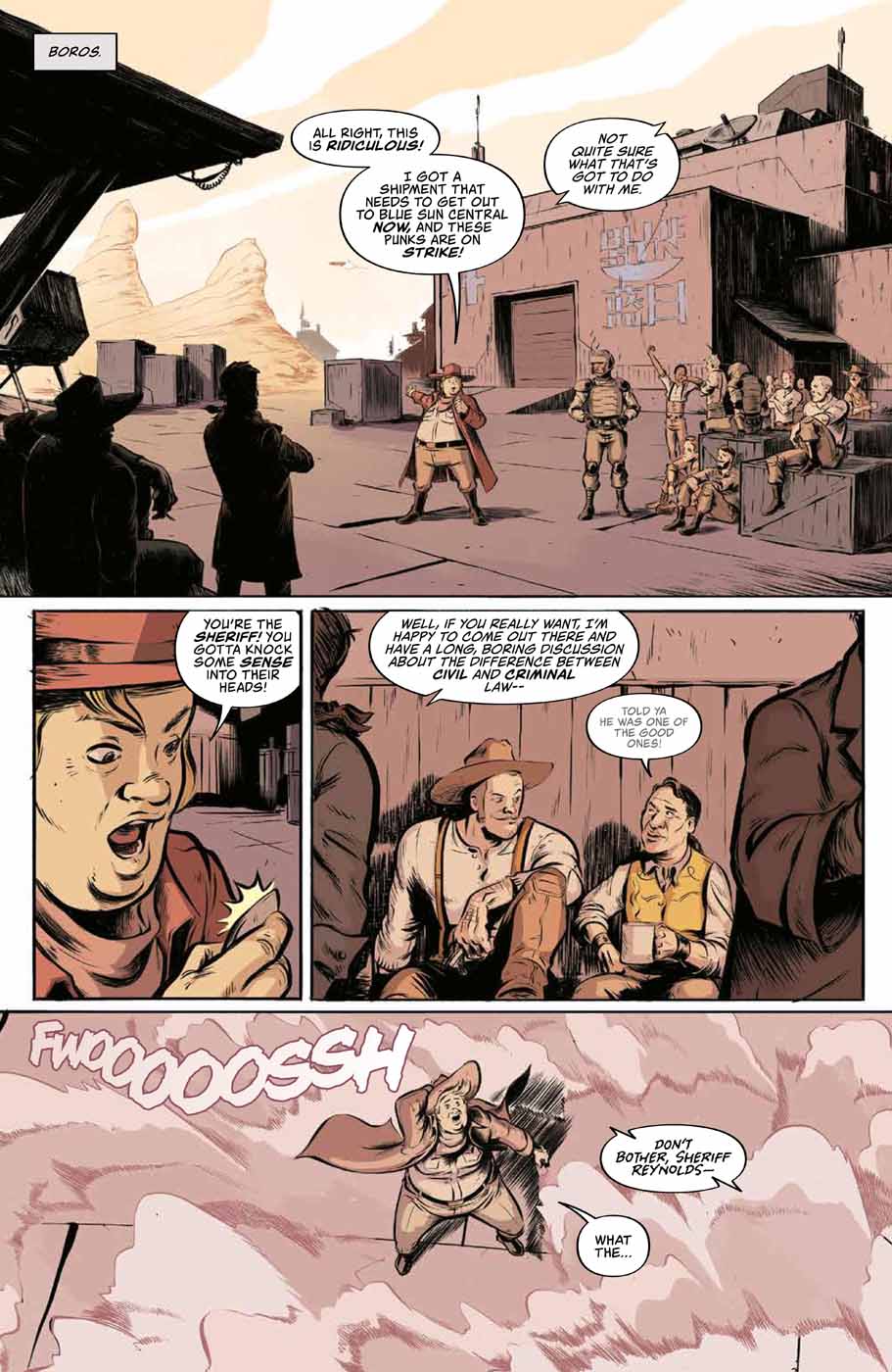 Description: The Blue Sun Rising event continues! The Blue Sun Corporation has launched their new line of high-tech robots designed to help local law enforcement, and they already have their electronic eye on a new target-the Chang-Benitez Gang! Mal wants to help his former crew on Serenity, but can they trust him while he still wears the badge?