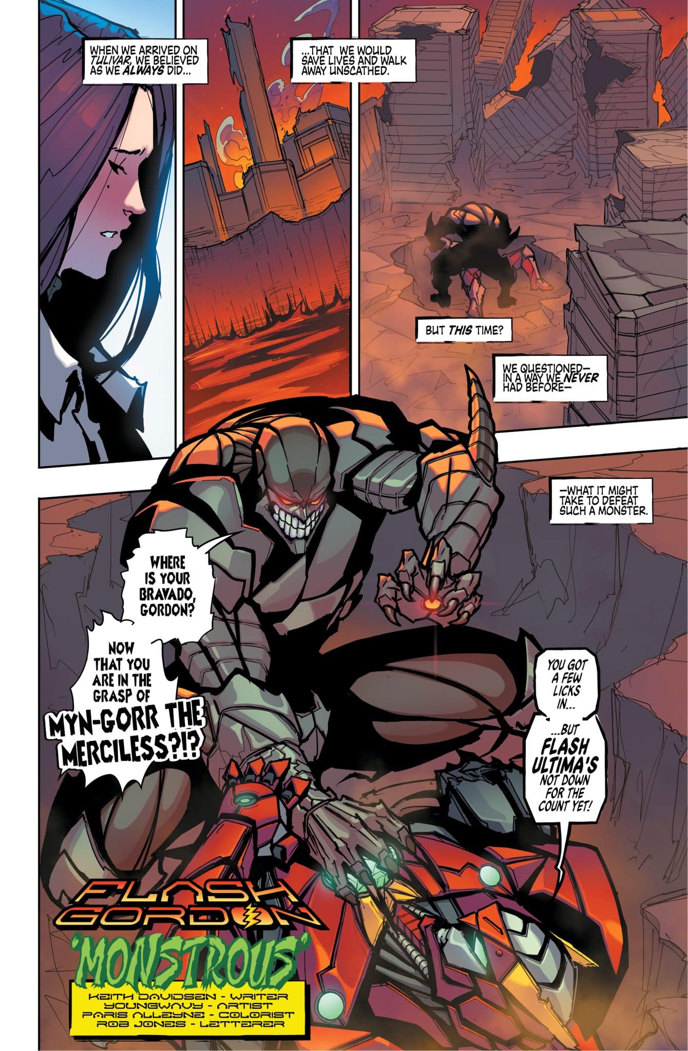 « The Fall of King Vultan » expands upon Mad Cave Studios’ Flash Gordon ongoing series with a father-and-son tale that brings deadly mercenaries to Sky City—it’s fight or flight in more ways than one! This issue also features two « Flash Fiction » stories—wholly original takes on the classic character and his companions. « Flash Gordon and the Madness of M’nngh » is the first in a series of horror-themed shorts that would make Lovecraft proud. Another tale provides an interpretation in a genre you never would’ve guessed!