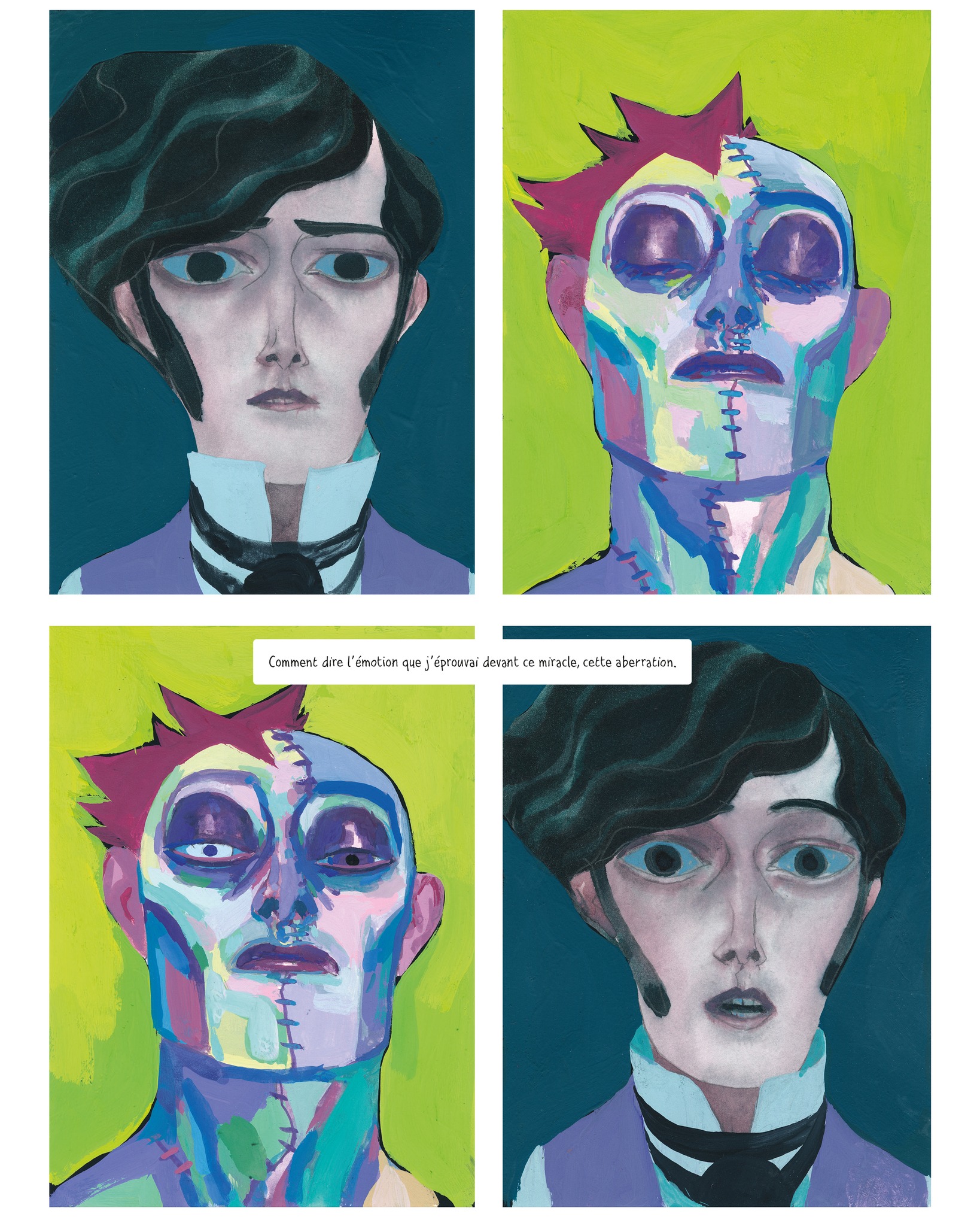 « Comment dire l’émotion que j’éprouvais devant ce miracle, cette aberration ? Comment trouver les mots pour décrire l’être abominable que j’avais créé au prix de tant de soins, de tant d’efforts, et de sacrifices ? »