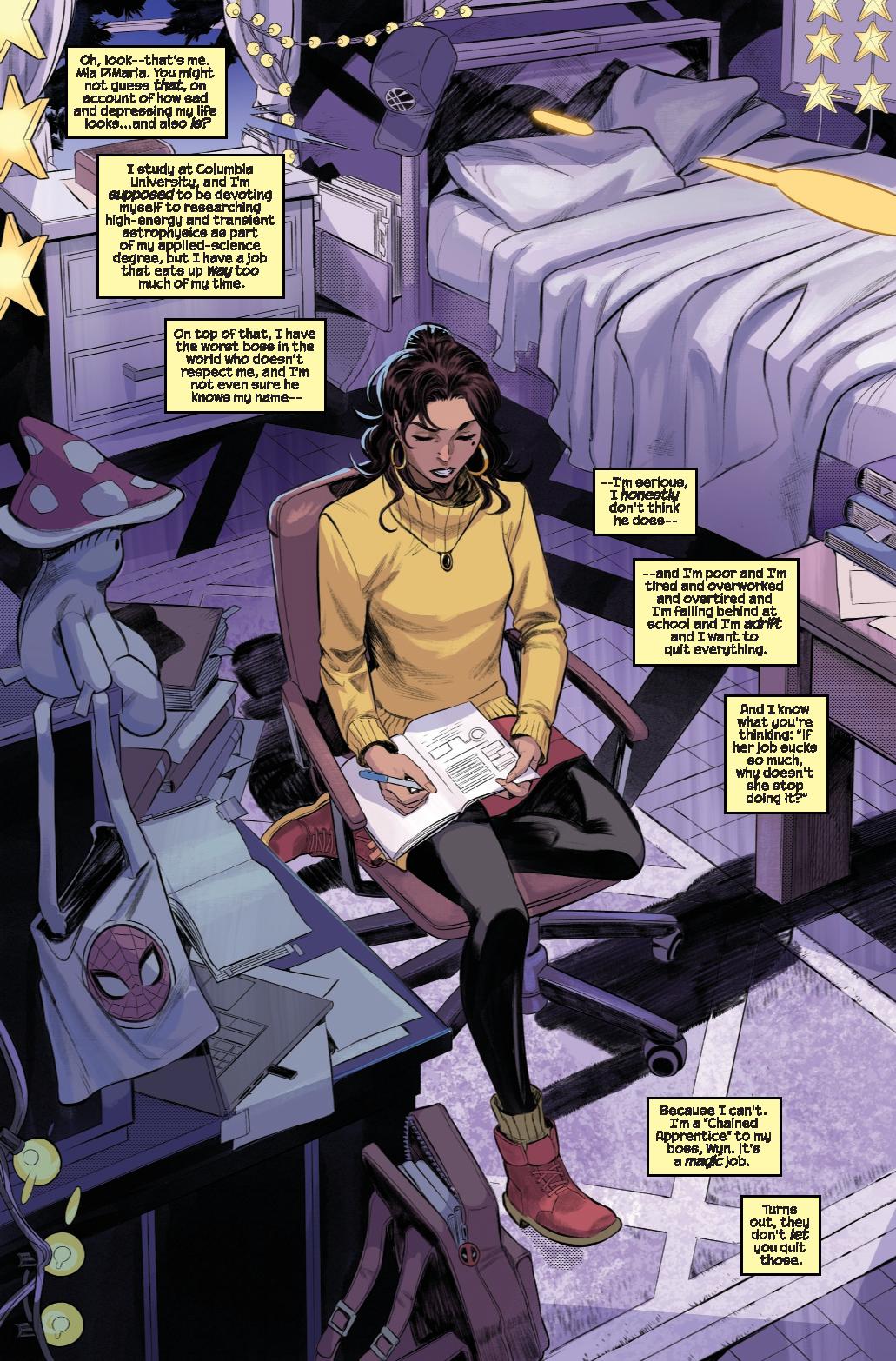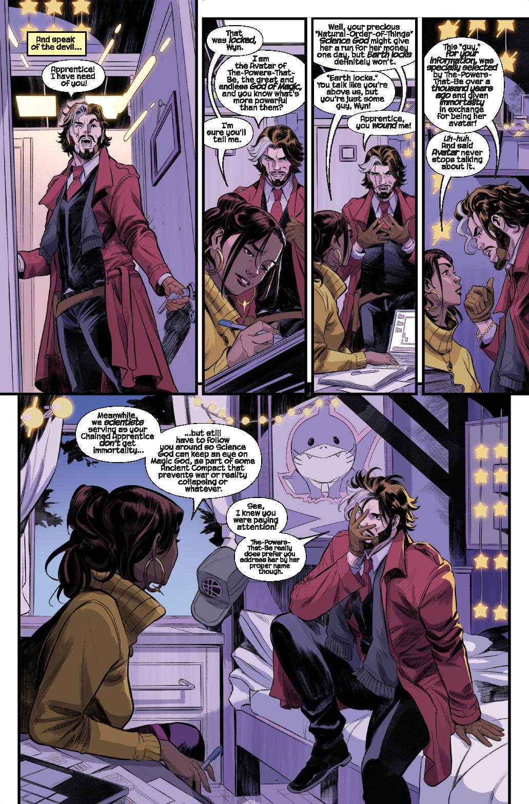 Using a combination of science and magic, Doctor Doom has taken over the world, which means Wyn – sole Avatar of The-Powers-That-Be (think: Magic God) – has an interest in how this happened AND how to stop it. His sworn apprentice, Mia DiMaria — a college-aged woman disillusioned with most magic, some science and definitely ALL of her job working for Wyn — is brought along, and soon finds herself at the center of a crisis that could impact Earth for generations to come.
