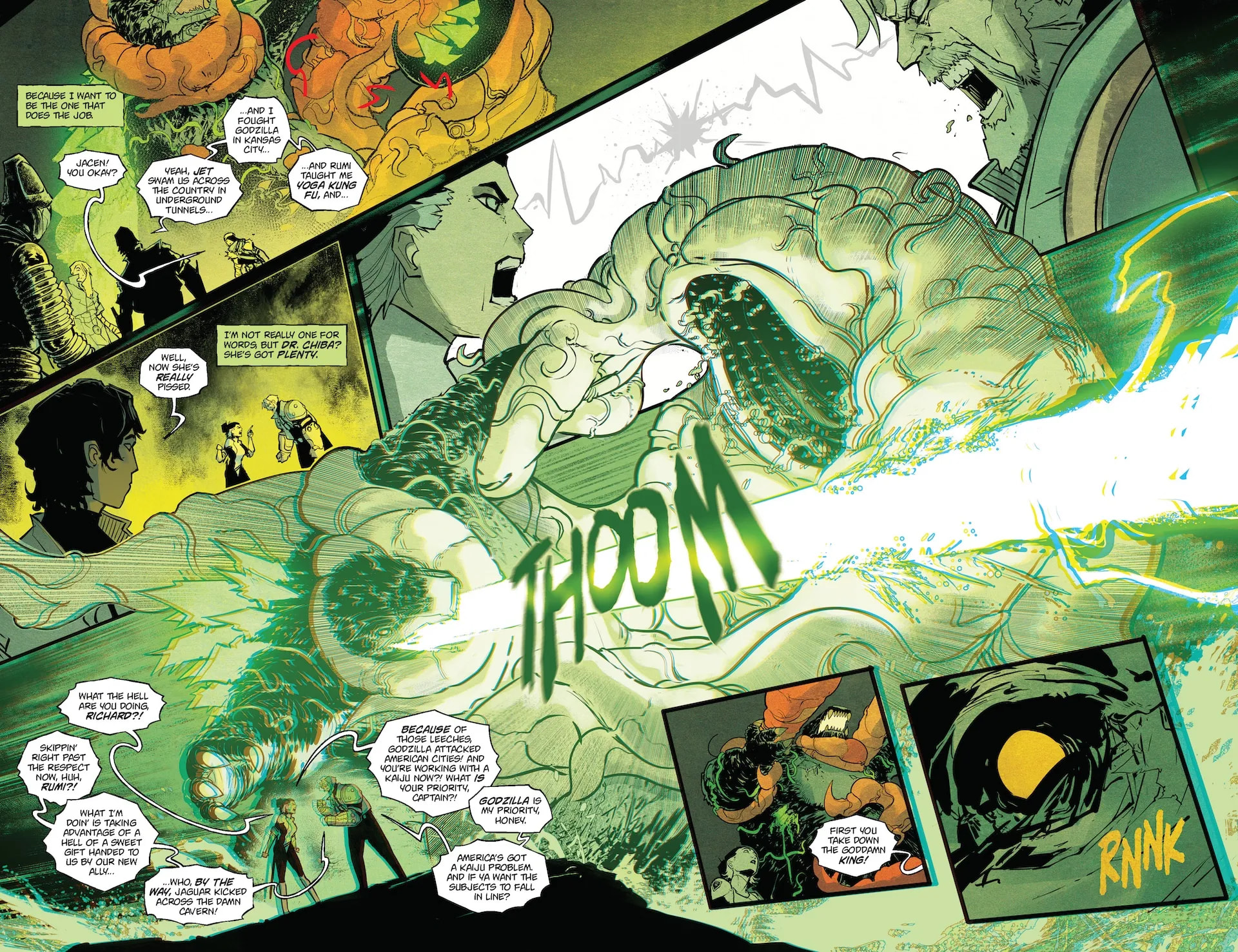After attacking Atlanta, Godzilla seemingly disappeared into the Earth below. While half of G-Force goes searching for the origins of the synthetic leech kaiju Yacumama, the other half is going Godzilla hunting. But will Rumi’s technique be enough for Jacen to take down the King of the Monsters?