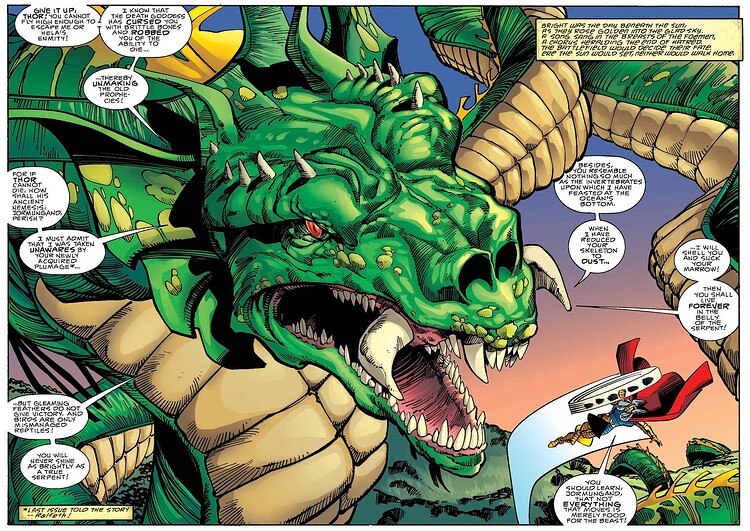 Bon. Thor contre une grosse bébête, je ne m’y serais pas risqué depuis le Thor #380 (1987) de Walt Simonson, hein.