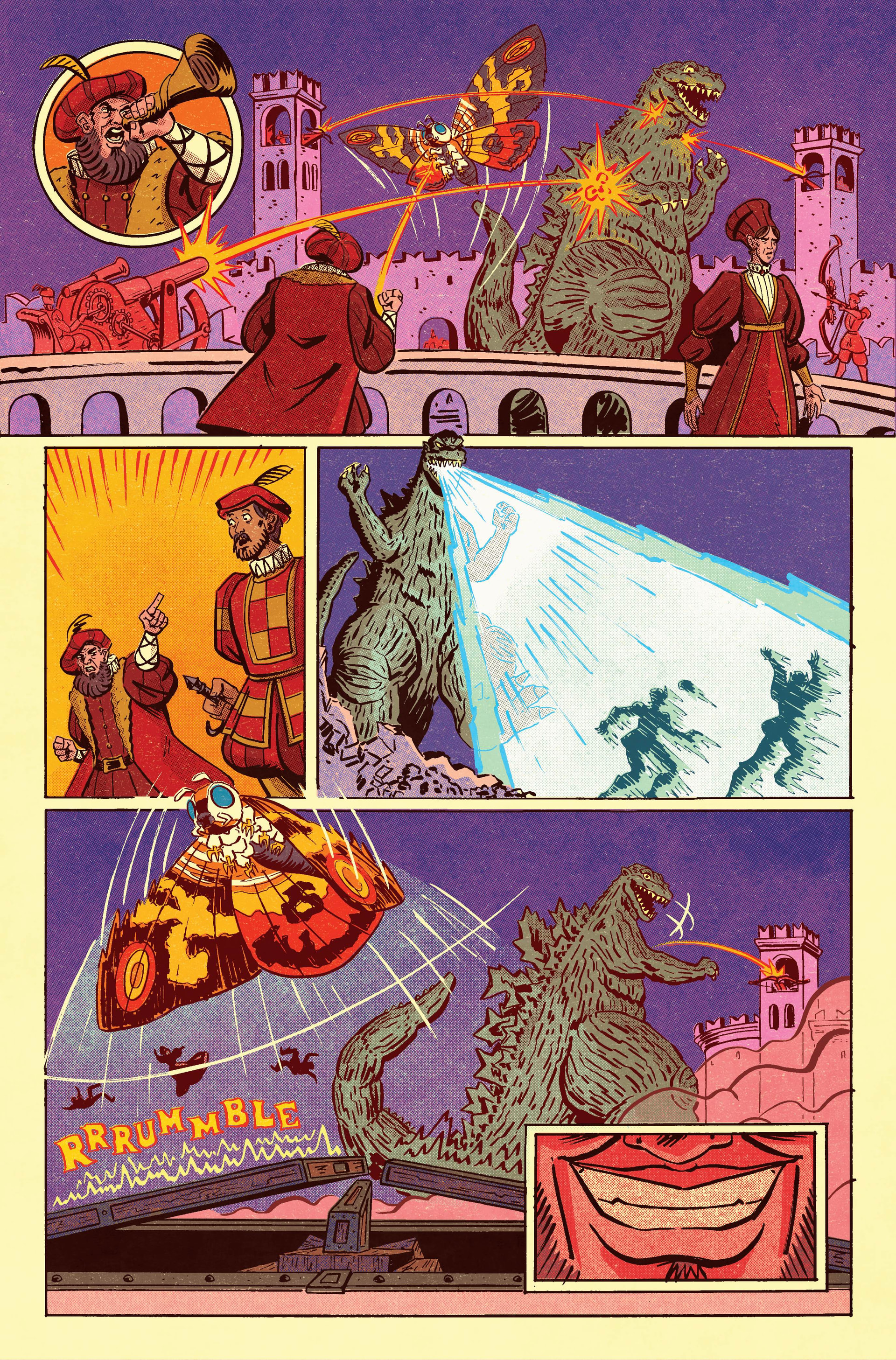 Each one-shot also includes a five-page backup story by Scioli. The debut issue finds Godzilla in Sherwood Forest with Robin Hood and the Monster of Nottingham.