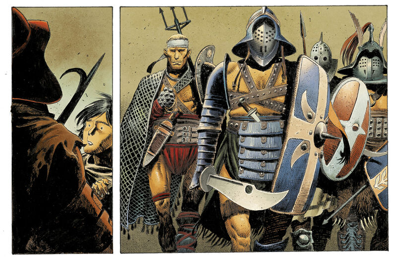 En fuite de Pompéi, Lucius se fait désormais appeler Marcus et devient ouvrier sur le chantier du Colisée. Il y fait la connaissance d’un jeune sculpteur, Cyriacus, qui lui fabrique un bras articiel et n’est autre que son fils ! Hélas, ce dernier veut retrouver ses parents adoptifs… S’ensuit un terrible affrontement dans le monument en construction et un marché imposé à Marcus : tuer Al-Azar dans sa forteresse de Golgotha !