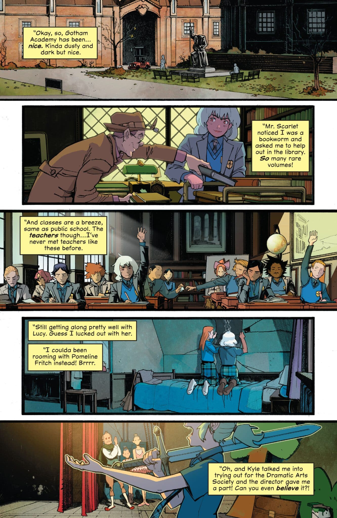 “I’m so excited to return to the world of Gotham Academy with Becky and Karl,” says Fletcher. “It’s a joy to be back with the original team, and to welcome the incredibly talented Marco Ferrari to the fold. His work brings such life to these characters and to the halls of the Academy itself.”
