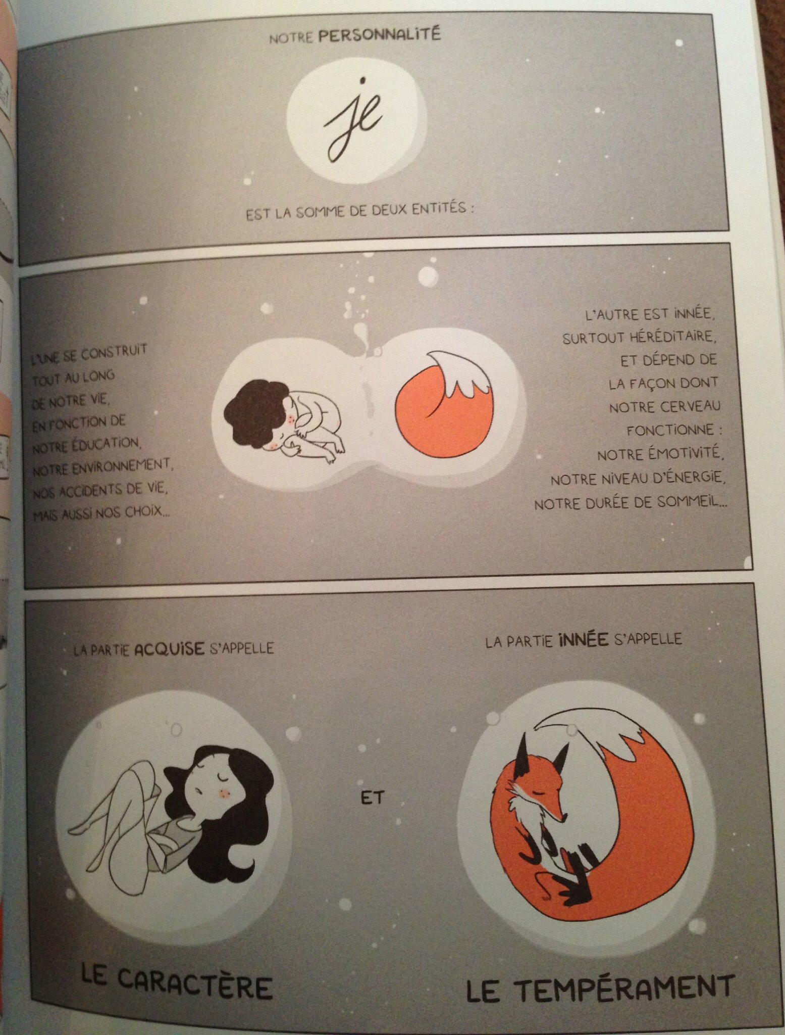 Le lecteur accompagne l’autrice dans une enquête sur sa cyclothymie incarnée par un renard revêche. Un livre d’utilité publique, hyper documenté, cartoonesque et ludique, pour mieux comprendre les troubles bipolaires.