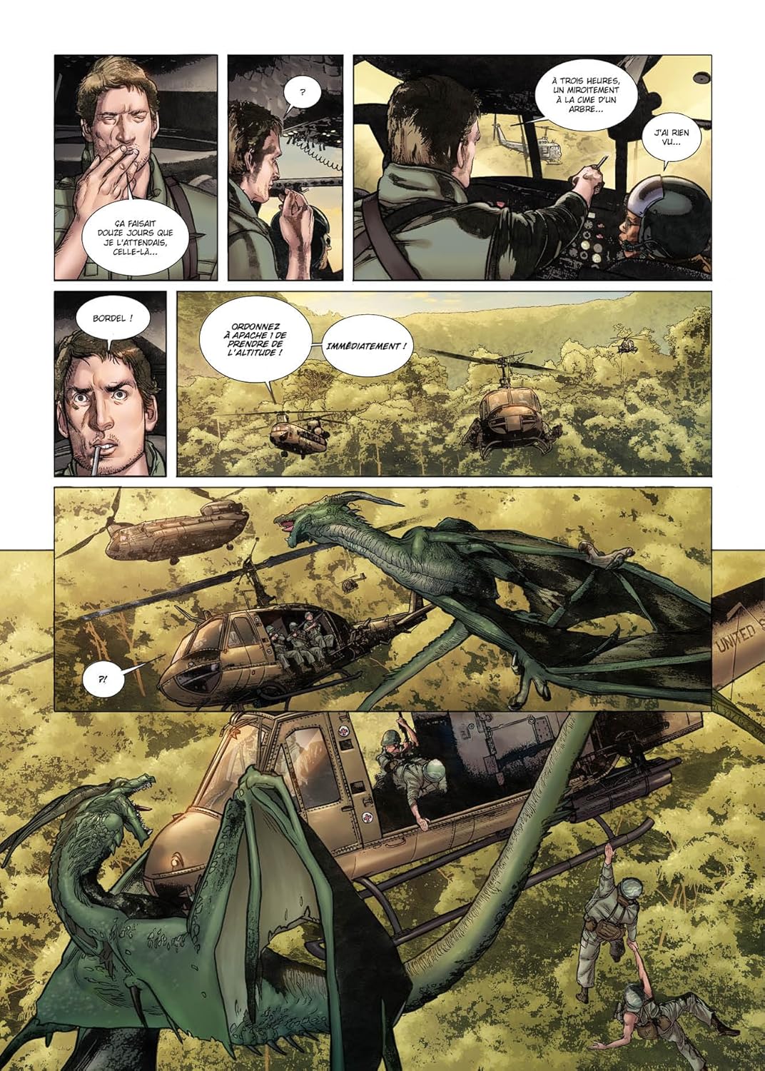 Vietnam, 1969. Trois hélicoptères tombent dans la jungle. Pas à cause des Vietcongs… mais d’un dragon. Nick, tireur d’élite, découvre qu’un enfant famélique contrôle la créature. Faut-il le tuer ou l’épargner ? Hanté par la mort de son frère, il fait le pire choix pour un soldat : protéger le gamin. Commence alors une traque sanglante, où les monstres ne sont pas toujours ceux qu’on croit…