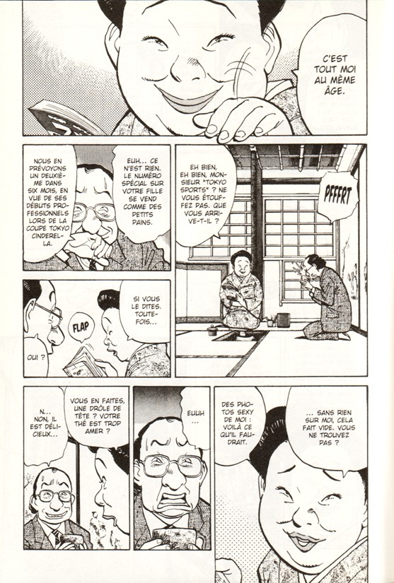Je vois Happy comme une sorte de transition : un auteur qui continue sur un créneau qu’il a déjà bien balisé avec Yawara (la jeune héroïne sportive) tout en menant bientôt son premier thriller pur jus. Une sorte de bouée de sécurité, qui confirme aussi la bonne réception de son public.