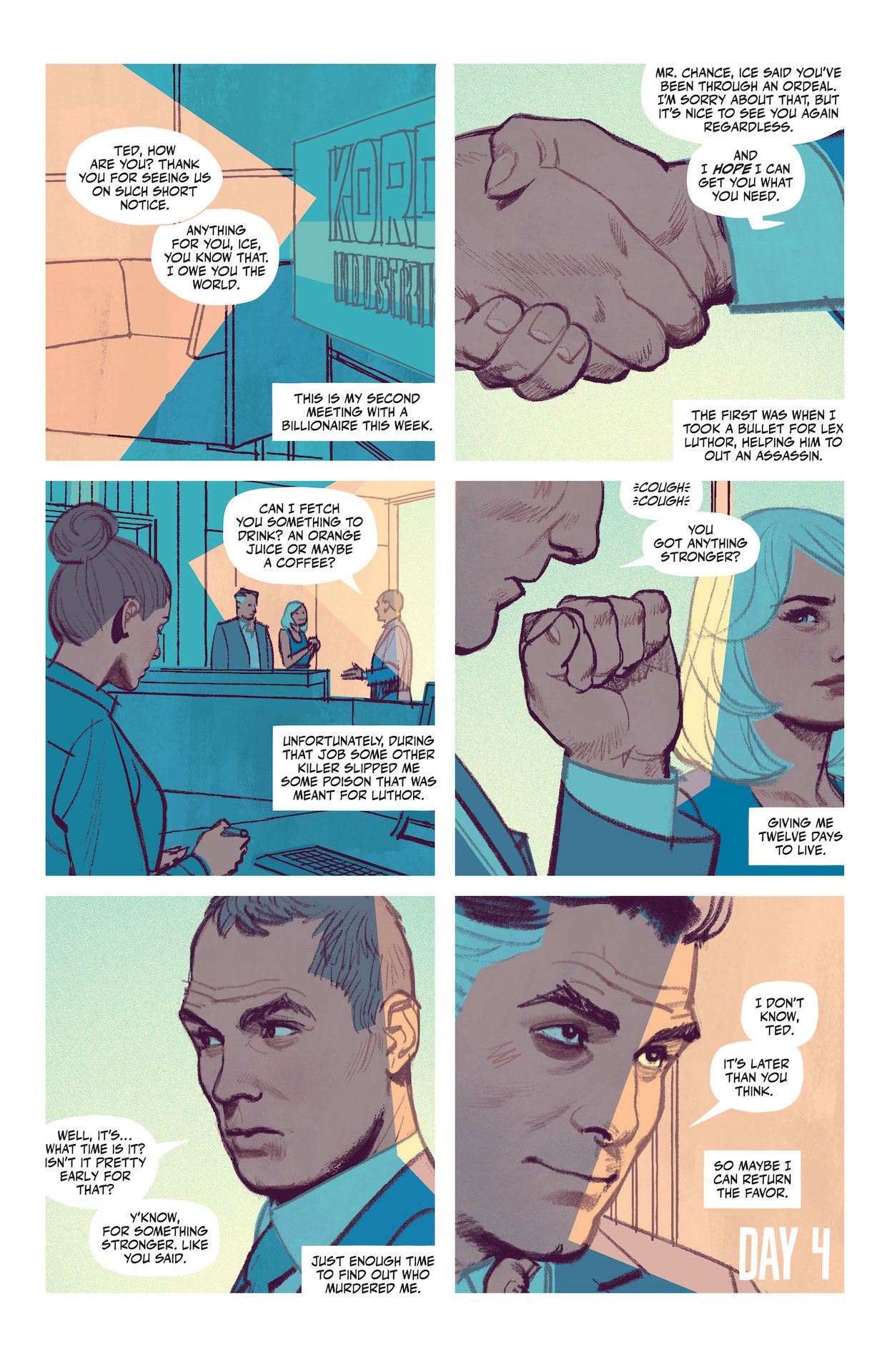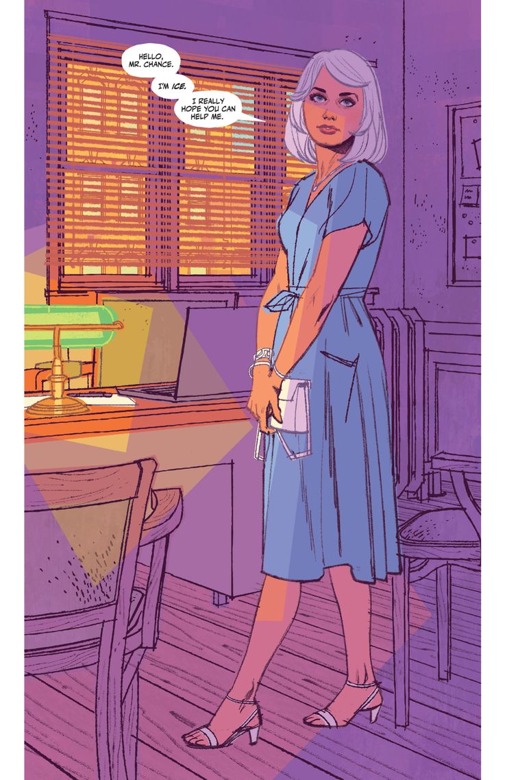 Christopher Chance now has 11 days to solve his own murder. With almost no leads, it would seem the case of his own death has gone cold…but it’s about to get a whole lot colder. Enter Ice, former member of Justice League International, arriving at Chance’s office with some unexpected information…and mysterious intentions.