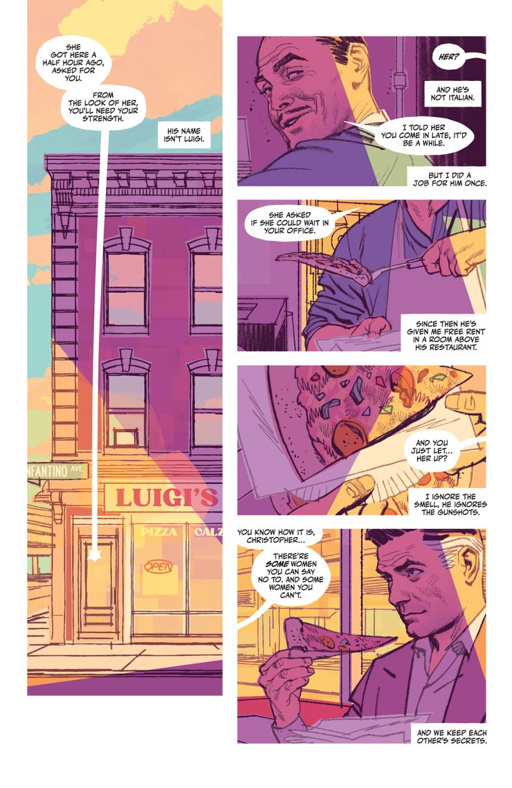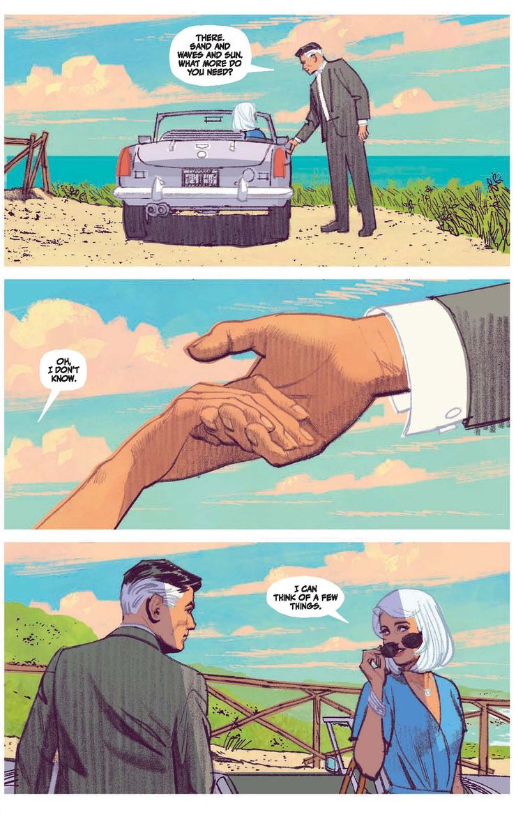 Les dessins de Greg Smallwood sont superbement rétro, apportant à l’oeuvre ce cachet propre aux séries de détectives privés telles que Mannix ou Richard Diamond avec des teintes chaudes et pastel qui font penser à la Californie.