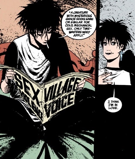 "Et examiner les débuts de Sandman à la lumière du Swamp Thing de Moore, c’est mettre le doigt sur l’apport de ce dernier. Sandman bâtit son récit sur toute une arrière court de personnages DC dont certains avaient été réactualisés voire créés par Moore : les « présentateurs » des titres horrifiques des années 70, les diverses itérations du Sandman, Matt Cable (réincarné en corbeau), John Constantine (création de Moore dans Swamp Thing), sans compter les apparitions pures et simples de super-héros comme Martian Manhunter ou Mister Miracle ou des villains comme Doctor Destiny. Gaiman (et à des degrés moindres Morrison et Milligan) s’insèrent dans la continuité méthodologique directe de leur précurseur.