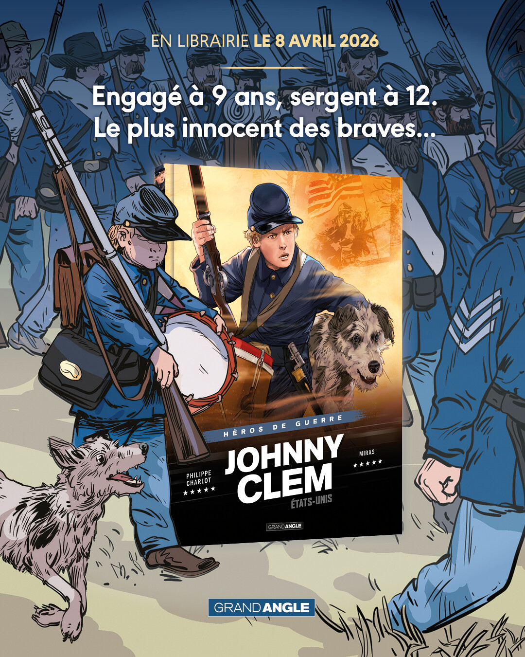 Découvrez l’histoire du plus innocent des braves dans Johnny Clem (de la collection Héros de guerre), par Philippe Charlot et Miras (Mira’s Art), le 8 avril.