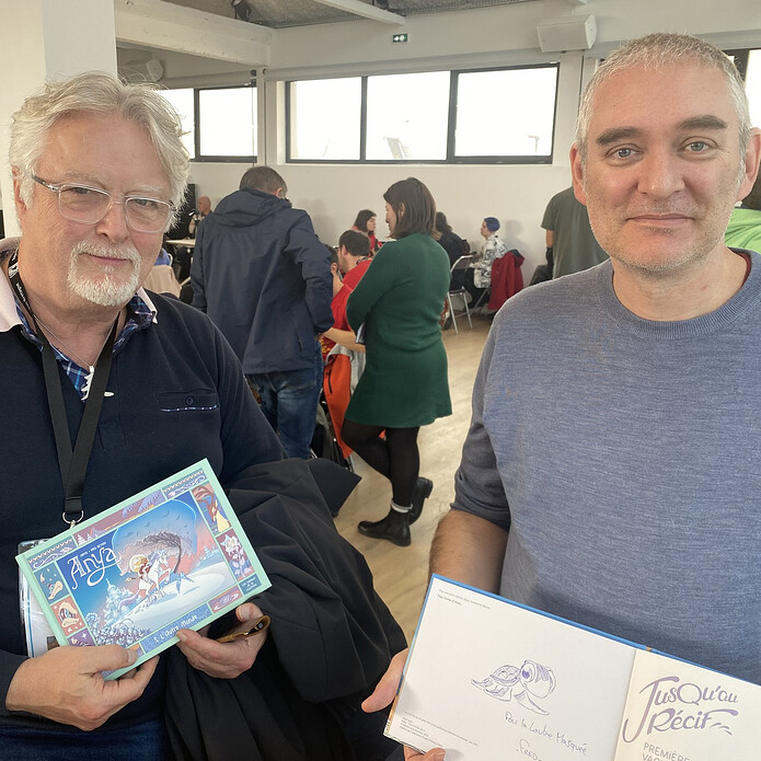 Le personnage bleu derrière les 2 albums montre par son immense sourire la qualité exceptionnelle de ce 1er tome .