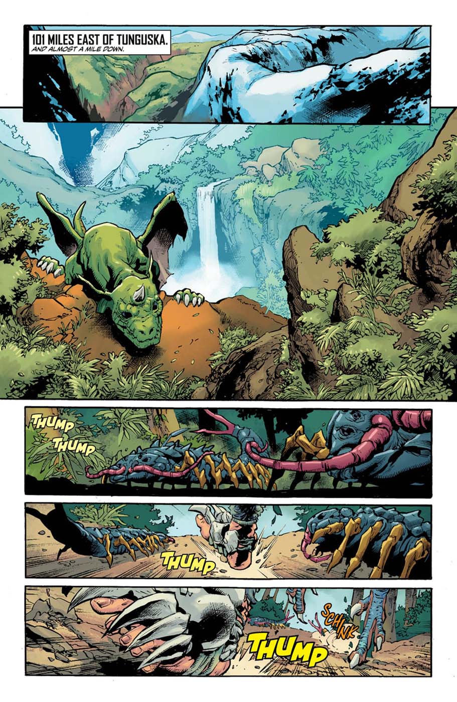 Description: « The Man from Monster Valley » part one! While fighting the forces of the malevolent super-science outfit known as Skull, the League discover a secret valley deep in the Russian Tundra, home to Makson, a lone human male raised by fantastic creatures. Learning his true identity, the JLA endeavors to reunite Makson with mankind, his family, and his birthright. But not everyone wants the mysterious savage to come home…