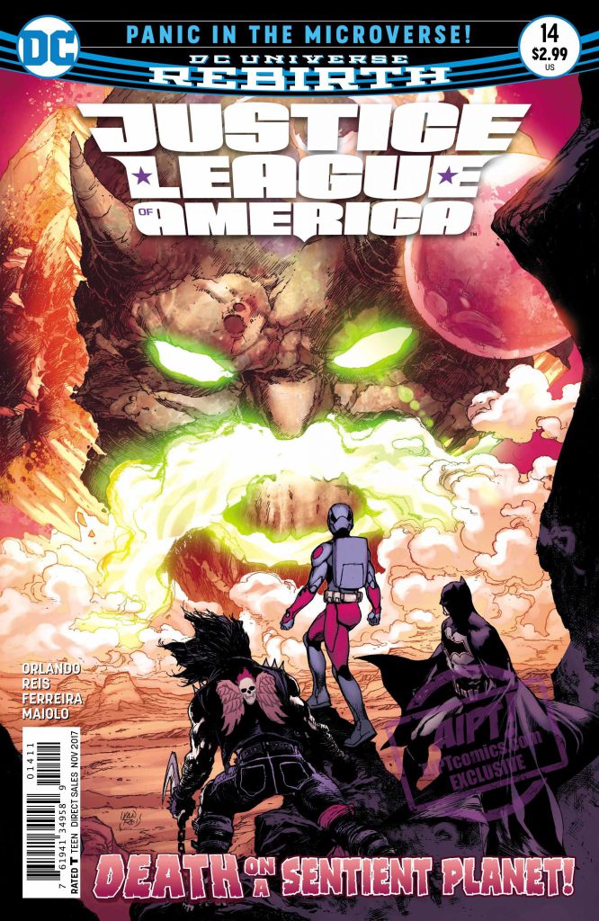 Troisième partie de la plongée d’une partie de l’équipe dans le Microvers pour Justice League of America #14, le titre de Steve Orlando et de beaucoup de dessinateurs. Depuis cette saga, Ivan Reis est revenu et l’appréciation des aventures de ce groupe hétéroclite s’en ressent : si, globalement, Orlando gère bien son équipe et sa série, sa production est encore meilleure quand elle est dessinée par Reis.