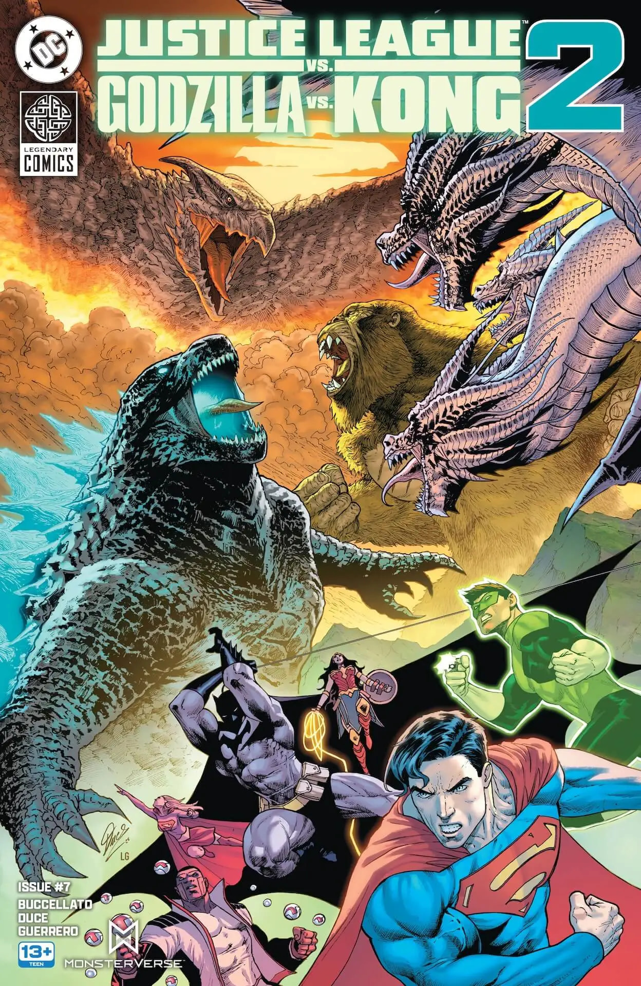 Duce reunites with writer Brian Buccellato for this seven-issue sequel to the acclaimed series that continues the battle between the Super Heroes of the DC Universe and the Titans of Legendary Comics’ Monsterverse.