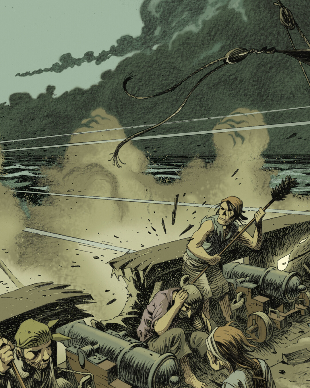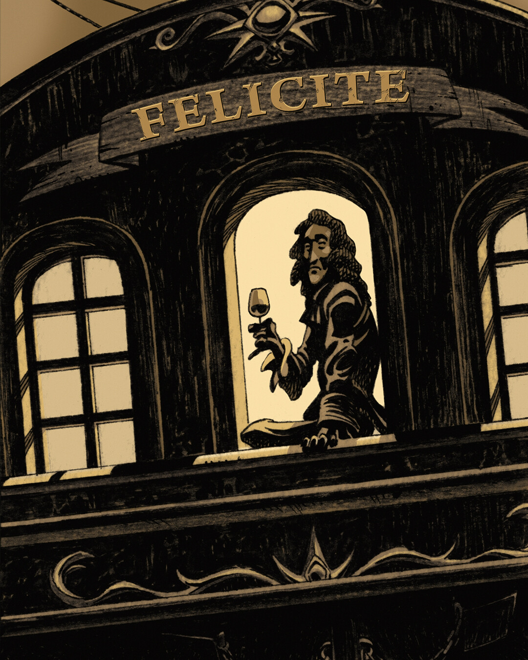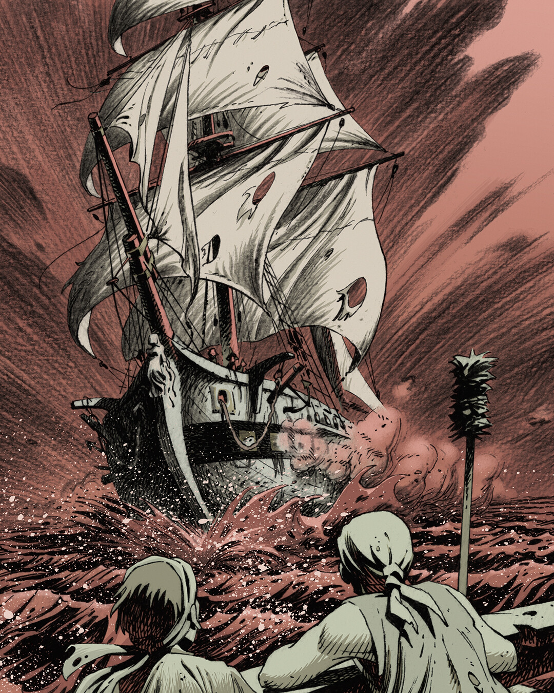 Multi-primé et reconnu pour sa TRILOGIE MARITIME, Riff Reb’s sublime ce petit chef-d’œuvre d’aventure maritime féroce et d’humour noir.