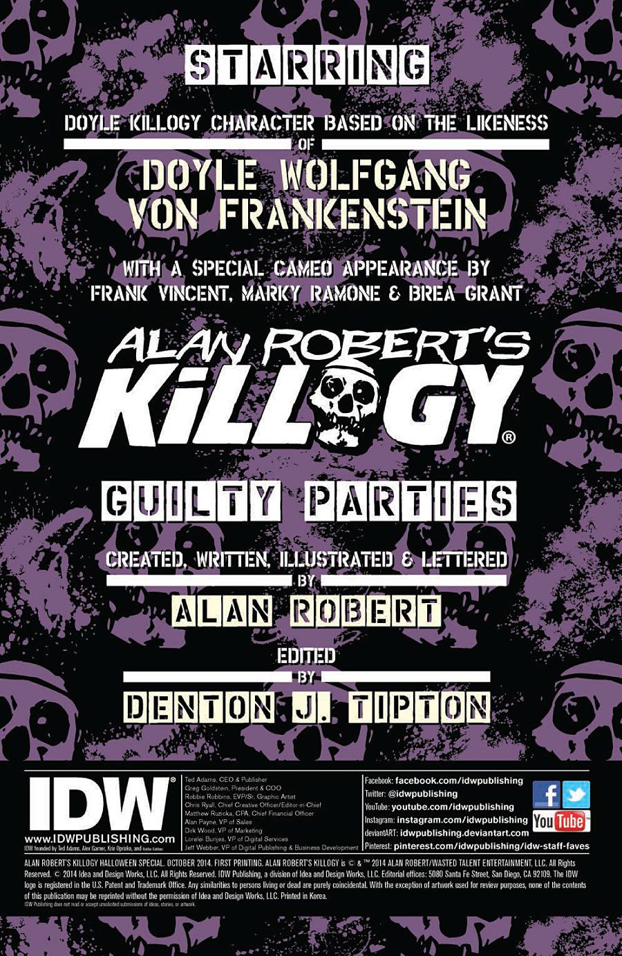 The critically acclaimed horror/comedy and soon-to-be animated series is back with a vengeance with a special Halloween one-shot! Devilocked horror punk Doyle Wolfgang von Frankenstein (formerly of the Misfits) stomps through the apocalypse like you’ve never seen him before! Written and illustrated by rock star-turned-comics creator Alan Robert (Crawl to Me), this issue also includes a 10-page first look at his much-anticipated miniseries The Shunned One, coming soon![/quote]