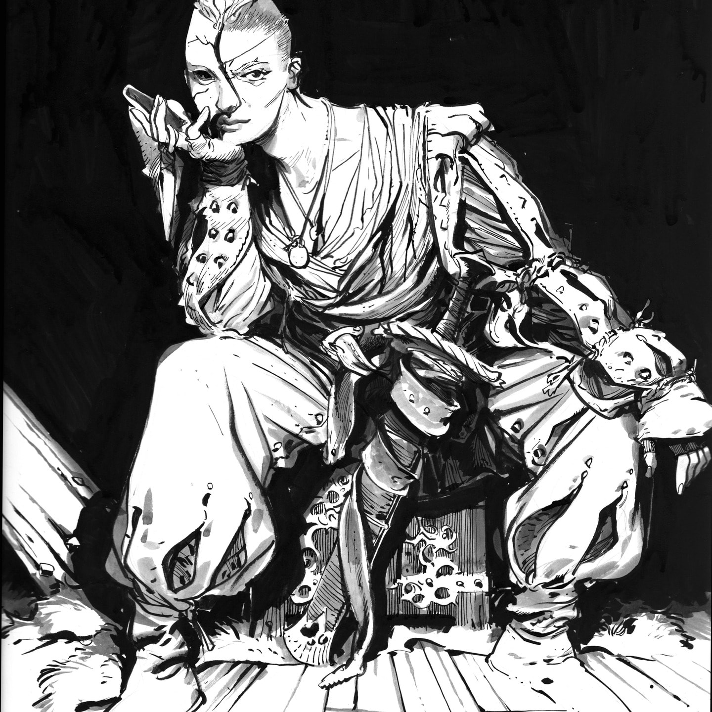 La Malhorde, c’est un groupe de mercenaire, vétéran d’une longue guerre sanglante et parcourant les routes d’un univers de Dark Fantasy – Grimdark même, c’est le nom de la chaîne ! – Tout à fait ! – à la recherche de contrat juteux.