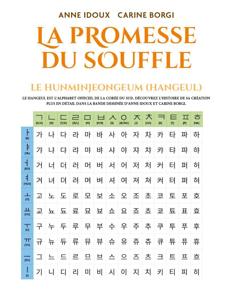 Avec “La Promesse du souffle” de Anne Idoux et Carine Borgi, vous découvrirez l’histoire de la création du Hangeul, l’alphabet officiel de la Corée du Sud