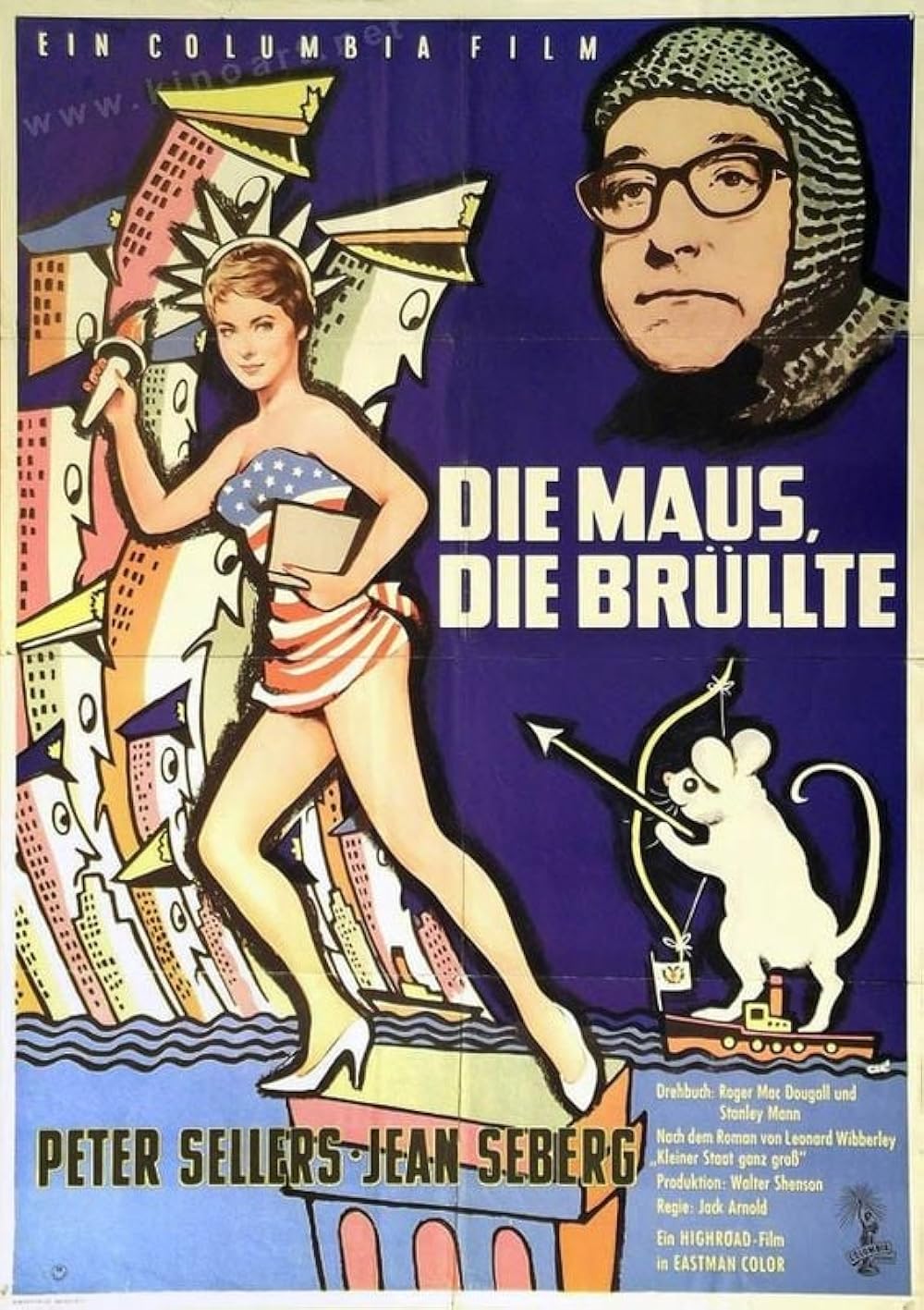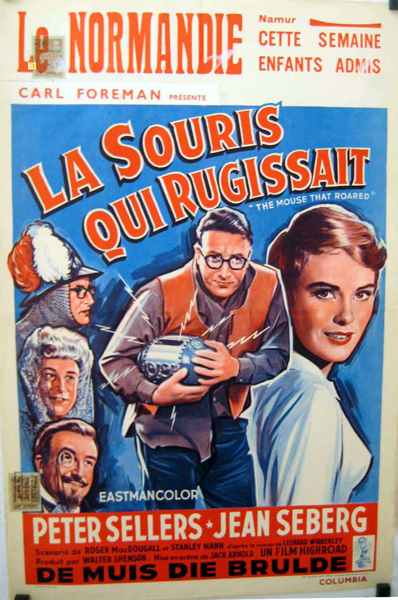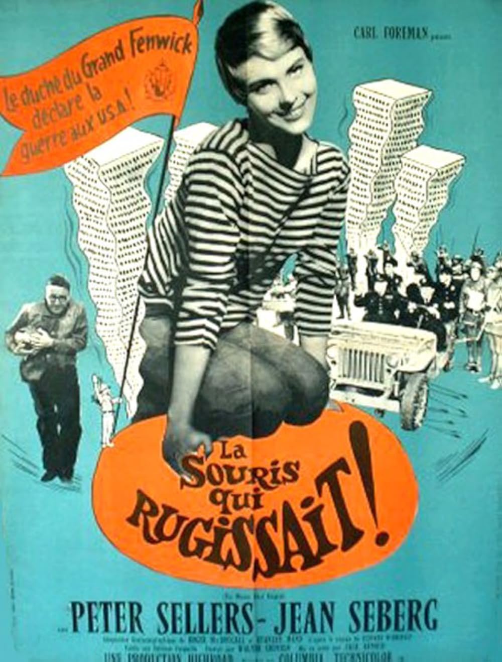 Sur La Souris qui rugissait, Jack Arnold a eu carte blanche (pas d’interventions du studio sur un projet considéré comme mineur) et signé une comédie jubilatoire, qui m’a donné le sourire tout au long de ses 80 mn. Les situations irrésistibles sont très bien servies par une belle troupe de comédiens, avec à leur tête un Peter Sellers qui jouait déjà trois rôles, inspiré en cela par son idole Alec Guinness sur Noblesse Oblige. À ses côtés il y a notamment la belle Jean Seberg (alors en début de carrière, elle était toute étonnée de la direction calme de Jack Arnold après avoir été malmenée par Otto Preminger sur Sainte Jeanne et Bonjour Tristesse) et William Hartnell (quelques années avant de devenir le premier Docteur de la série Dr Who).